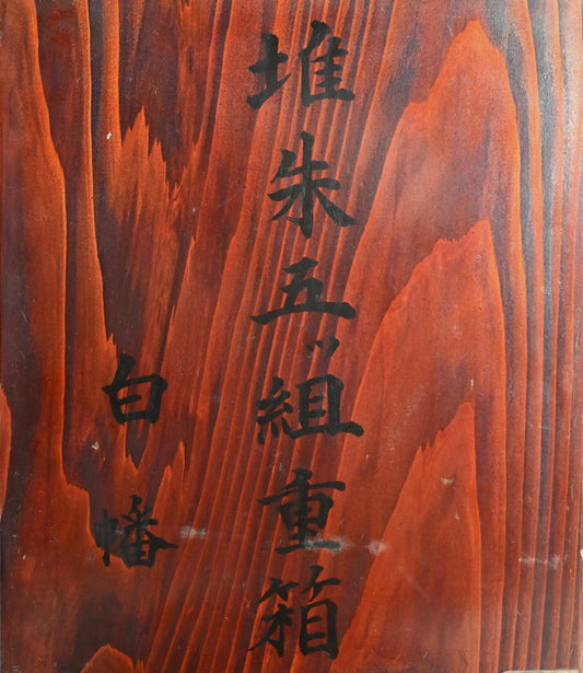 Exquisite Meiji p. Engraved Cinnabar Lacquer Box Set ー輪島塗 堆朱五ツ組重箱 白幡