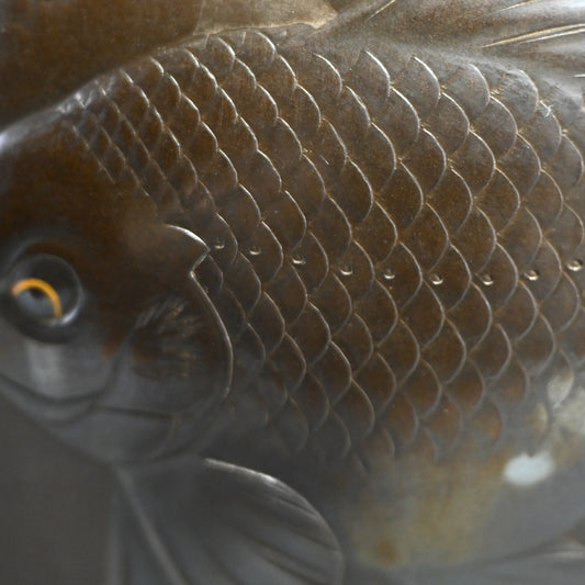 Museum Exhibited Bronze Vase ー内免 勝二 "青銅製金魚模様 花瓶"
