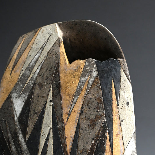Gold-glazed Vase ー佐藤 和彦 “灰陶釉金彩文壺”
