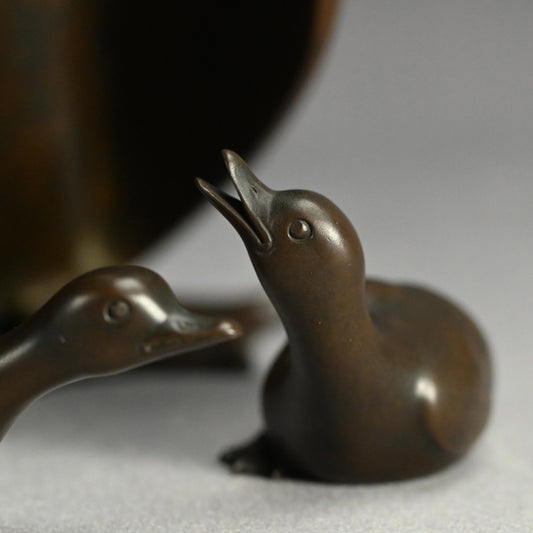 Bronze Duck family by Imperial Artist ー津田 信夫 "愛憐庇護"