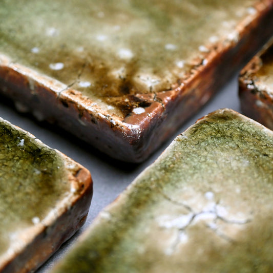 Fabulous Green Slab-Dish Set ー村越 琢磨 “灰釉 角皿揃”