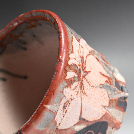 Superlative Fire-red Shino Chawan ー山田 和 "志野茶盌"