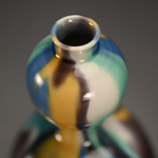 Antique Kyo-Satsuma Style Tsurukubi Ceramic Vase Set