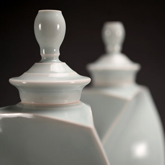 Pair Mentori Covered Vases ー"青白磁 対面取蓋物"