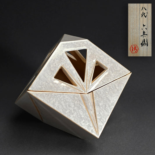 Modernist Koro by Rokubei Ⅷ ー八代 清水 六兵衛 “輝白釉刻線 香炉”