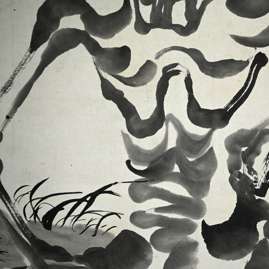Antique Japanese Painted Scroll Skeleton by Buddhist Priest ー樋口竜温