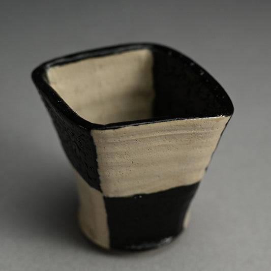 Kuro Oribe Ichimatsu Tea Container ー利茶土 ミルグリム “黒織部菱形市松茶器”
