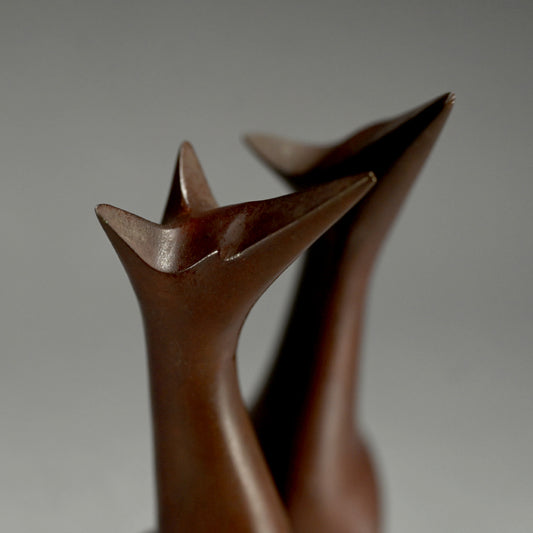 Antique Japanese Art Deco Bronze Fox pair, Kozan ー"狐 幸山"