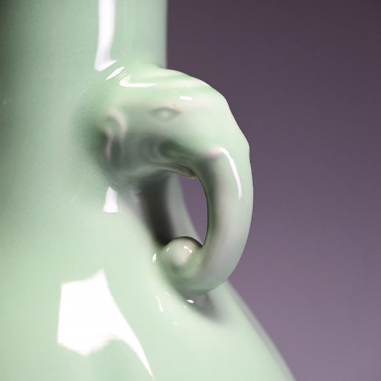 Antique Celadon Vase with Elephant Handles ー加藤 渓山 "砧青磁象耳木瓜胴形花瓶"