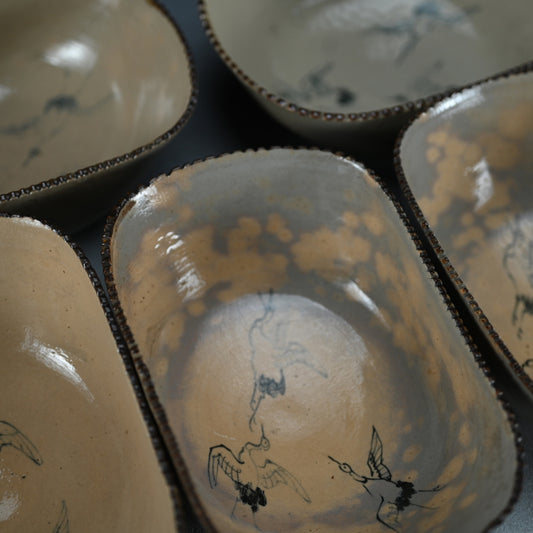 売り切れアンティーク和六風魚皿セット ー緑風窯