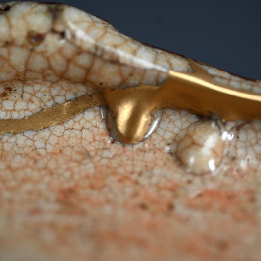 Antique Japanese Shino plate w/ Kintsugi Gold Repair