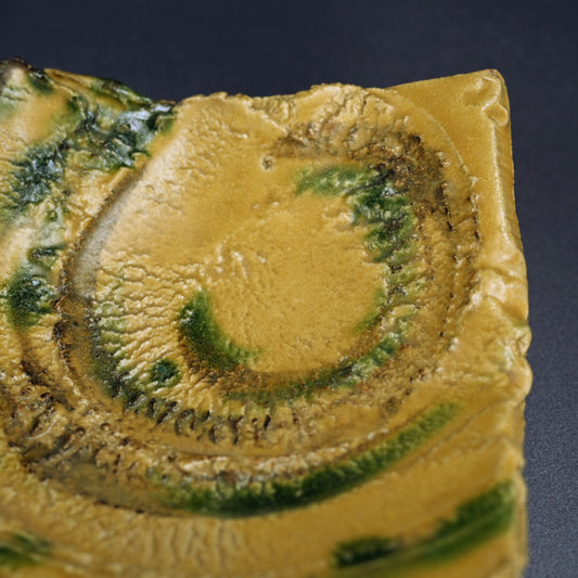 Brilliant Yellow Glazed Swirling Dish ―"黄瀬戸渦巻紋四方皿"
