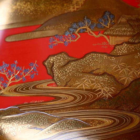 Breathtaking Antique Maki-e Lacquer Stand & Sake Cups ー蓬莱山蒔繪 三ツ組盃花月臺 臺組