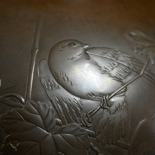 Picturesque Bronze Vase ー内免勝二, 紫峰 “からす瓜に雀 花瓶”