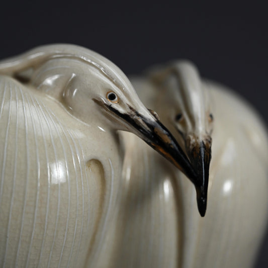 Okimono, Hakutou Sousyu ー宮川 (真葛) 香山 "白陶双鷺"