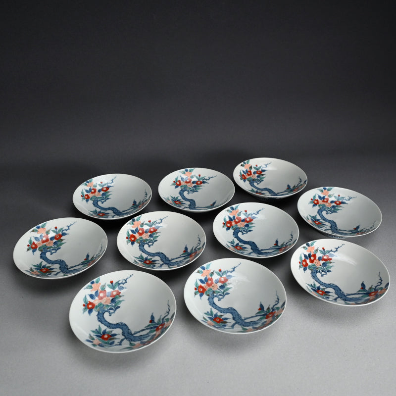 19th Century 10 pc. Nabeshima Plate Set with Camelia Design