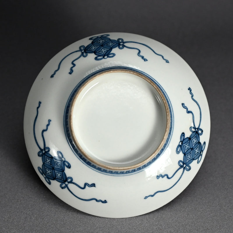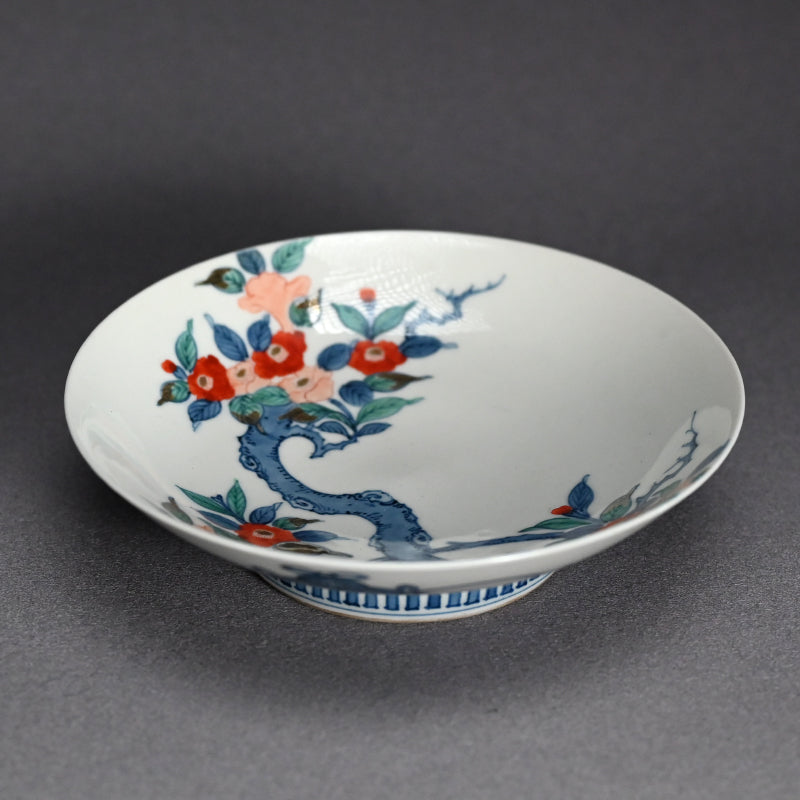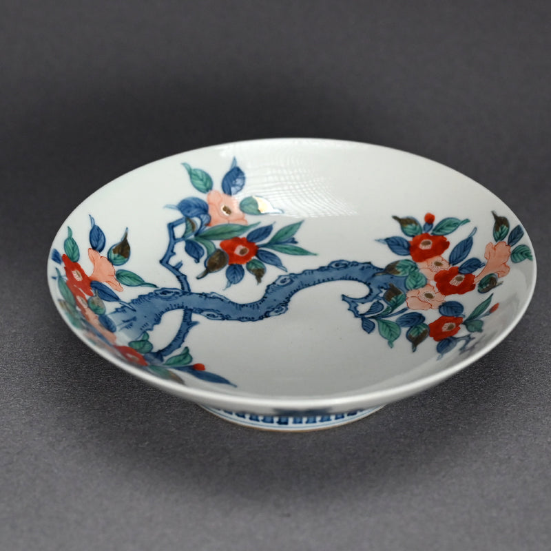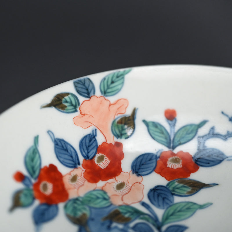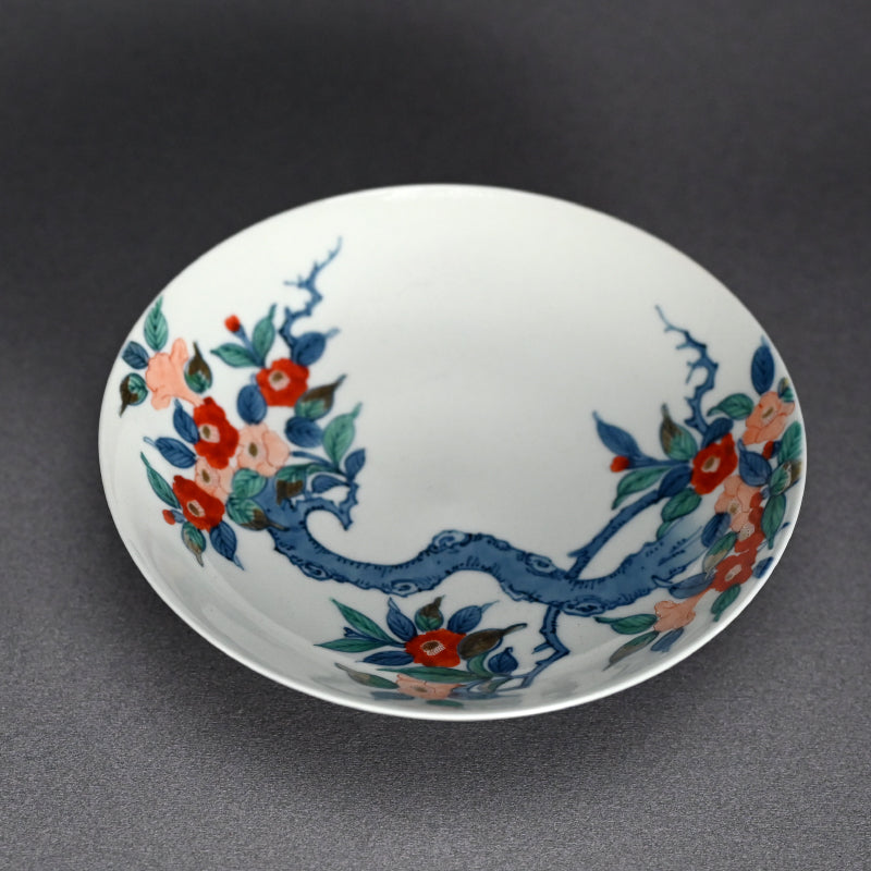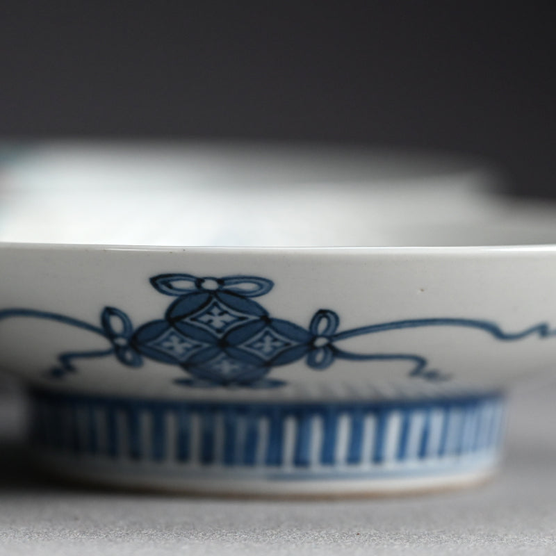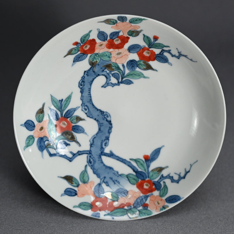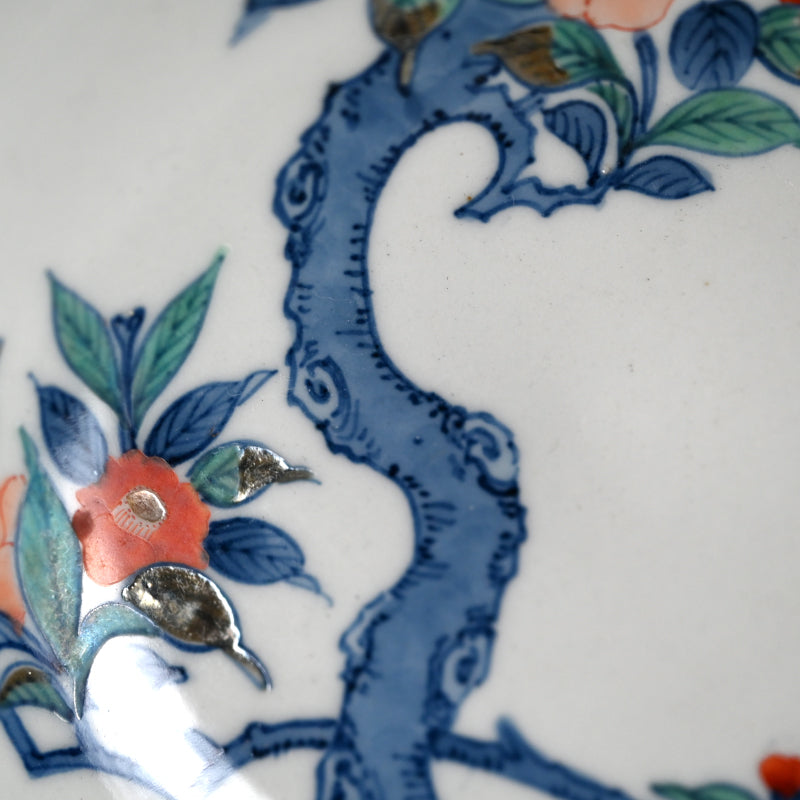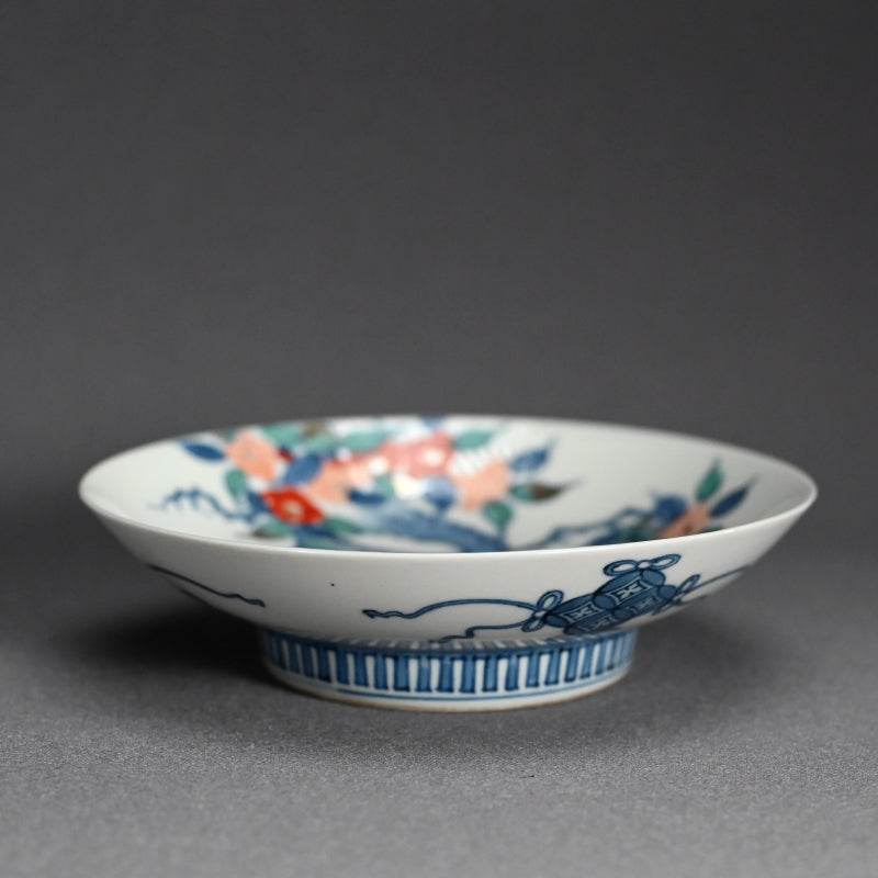 鍋島は、主に江戸時代(1603~1868年)に 現在の九州佐賀県にあった佐賀藩の藩主:鍋島氏の保護のもとで生産されていた高級磁器です。商業用に作られる他の多くの磁器とは異なり、鍋島焼は大名用や将軍家などの名家への献上品としてのみ生産されたため、威信と洗練の象徴でした。生産は17世紀後半、すでに磁器の産地として知られていた有田の大川内窯で始まりました。鍋島焼は、その優美なデザイン、細心の注意を払った職人技、そして洗練された上絵付け(特に青、赤、黄、緑)で知られ、古典的な日本の絵画や織物の影響を受けた様式化された花、幾何学、自然のモチーフがよく描かれています。有田焼という広義のカテゴリーとは異なり、鍋島焼は完璧なフォルム、洗練された装飾、そして限定生産を重視し、その上流階級向けの用途を反映していました。明治時代(1868~1912年)には生産量が減少しましたが、鍋島焼は今もなお、卓越した技術と繊細な美的感覚の融合を体現する、日本磁器の最高傑作の一つとして高く評価されています。
