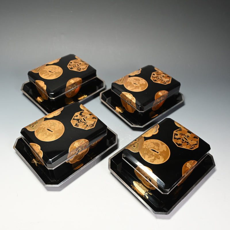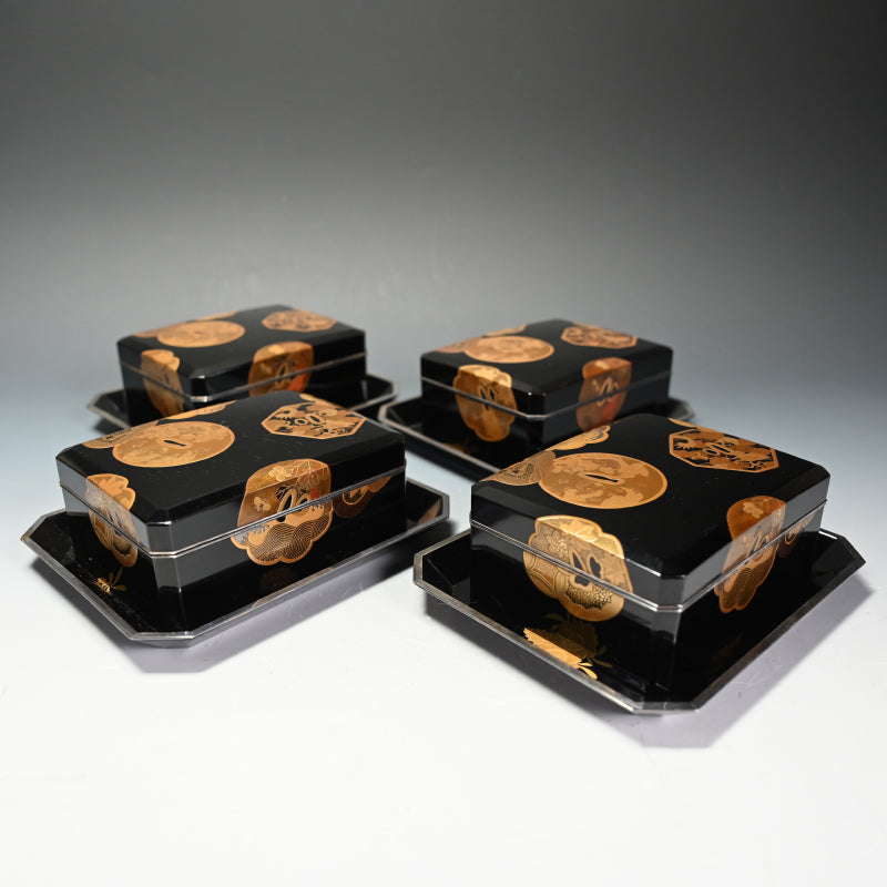 4 pc. Antique Japanese Lacquer Maki-e Box Set