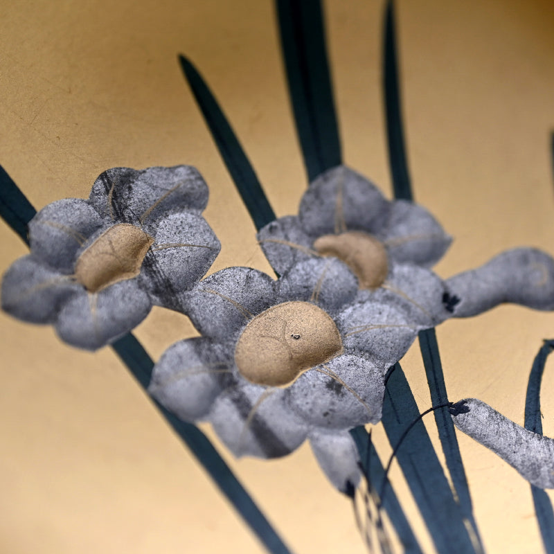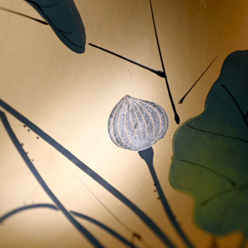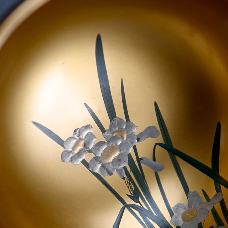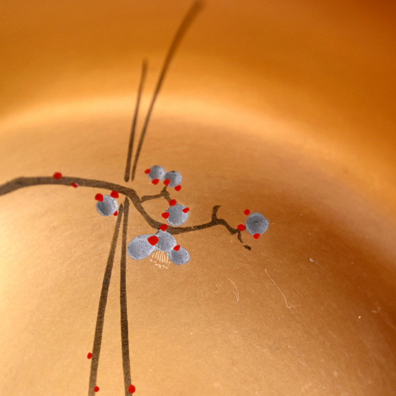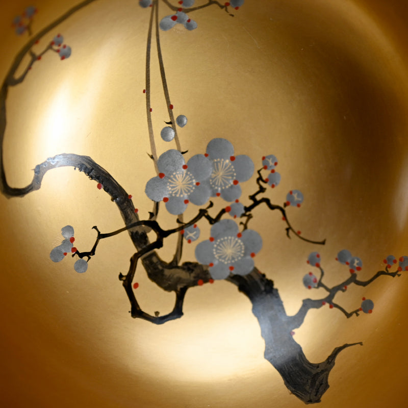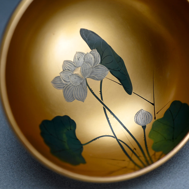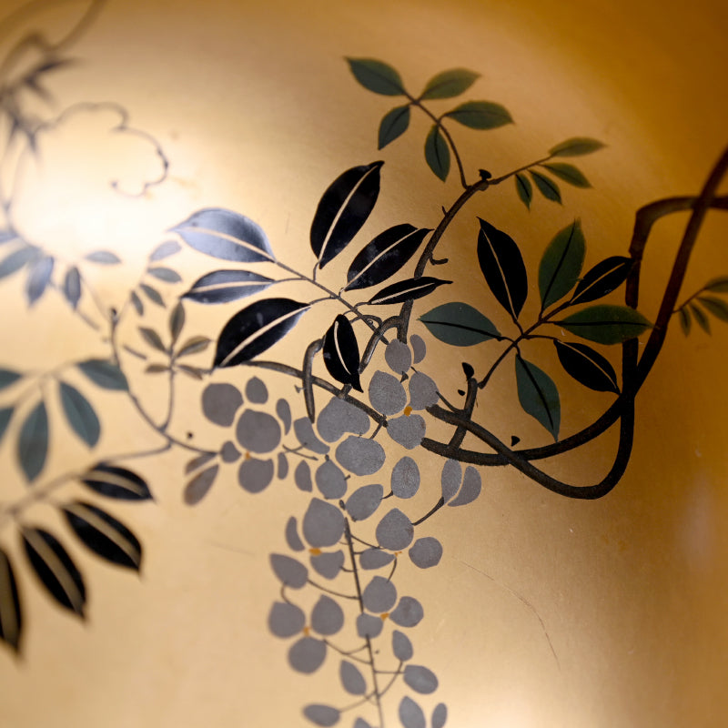 5つの木製碗セットです。美しい金色で覆われており、それぞれの内側には梅、蓮、桜、アヤメ、藤などの季節の花が飾られています。各ボウルは直径12cm、高さ6cmで、すべて20世紀初頭のものです。状態は良好です。