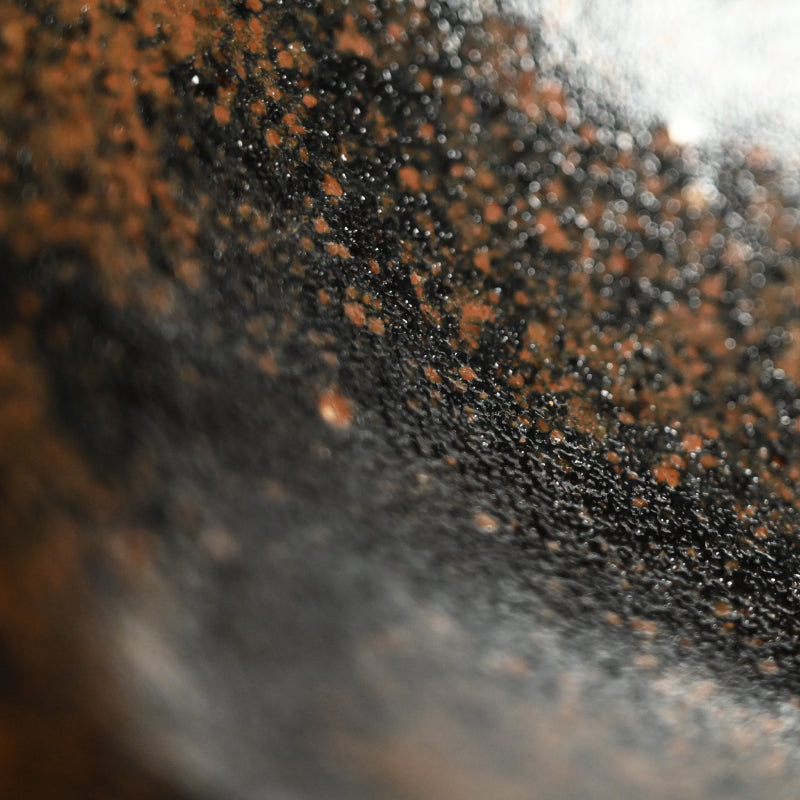 A set of five stylish mid-century bowls n metal glaze by important Sodeisha Member Kumakura Junkichio enclosed in the original signed wooden box titled Tenmoku-yu Hachi. Each is roughly 18 x 15.5 x 4.5 cm (7 x 6 x 2 inches) and all are in excellent condition.