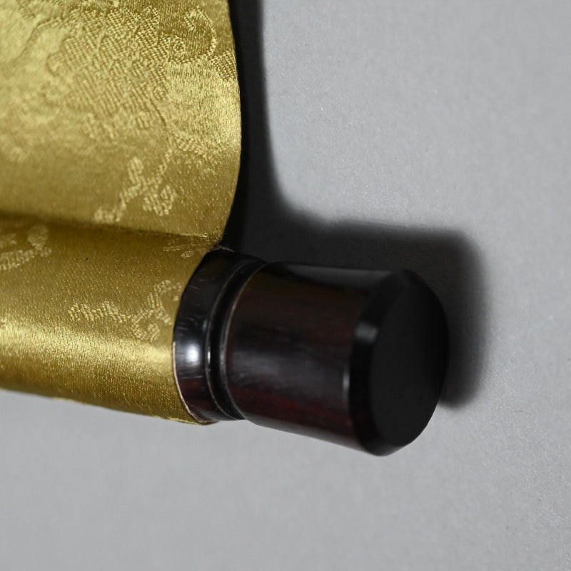 白倉仁芳は、この風情豊かな掛軸で、日本の文人像の理想、すなわち自然と静かに対話する孤独な学者の内面世界を想起させます。仁芳の自由な筆致、厳選された色彩、そして表現力豊かな墨の調性は、南画(文人)の美学を熟知しながらも、作品を現代的で鮮やかに描き出しています。本作品は、1921年秋の日付が入った「松渓幽通(しょうけいゆうつ)」と題されたオリジナルの署名入り木箱に収められています。本作品は、細やかな模様の絹本紙に墨と淡彩で描かれ、黒木挽きの軸で縁取りされています。本作品の縦横は47cm×横199cm(19×78.5インチ)で、全体的に良好な状態です。
