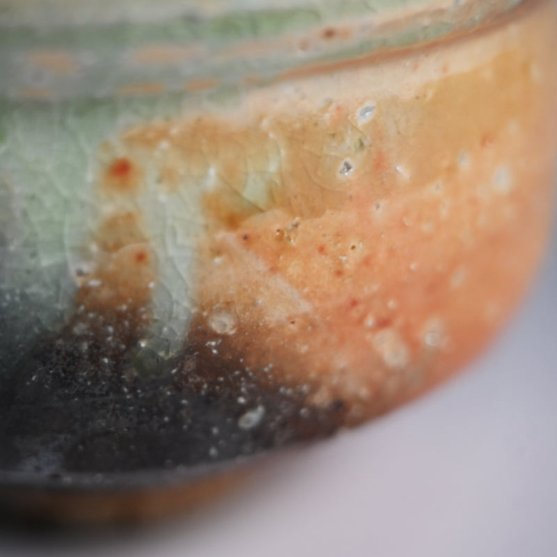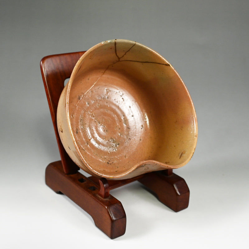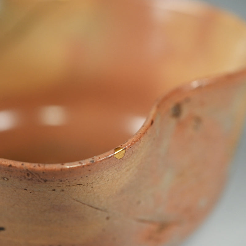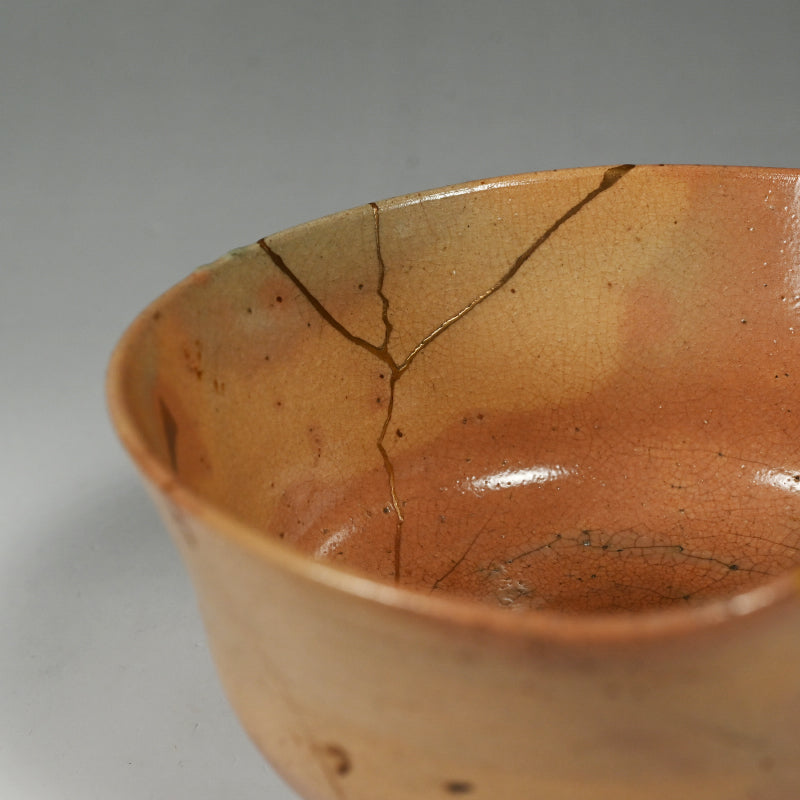歴史ある古典的な茶碗で、輝く金糸で織り上げられ 時代物の桐箱に収められています。金継ぎは 不完全さ・儚さ、そして成長と衰退という自然のサイクルの美しさを中心とした 日本の美的世界観である “侘び寂び(わびさび)” の精神を体現しています。金継ぎを通して 欠陥や壊れた部分を受け入れることは、時間の経過と物の歴史を理解し、その旅を通じて価値と個性を獲得することを認識する方法です。