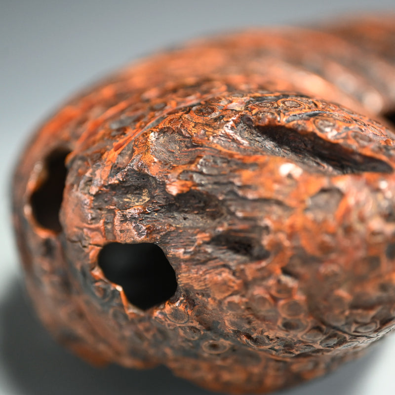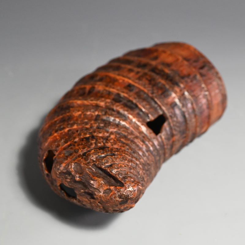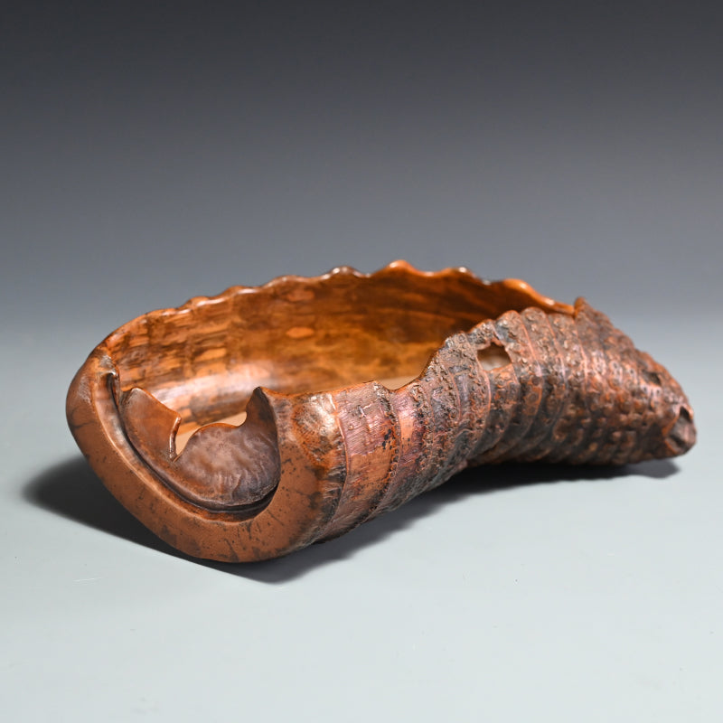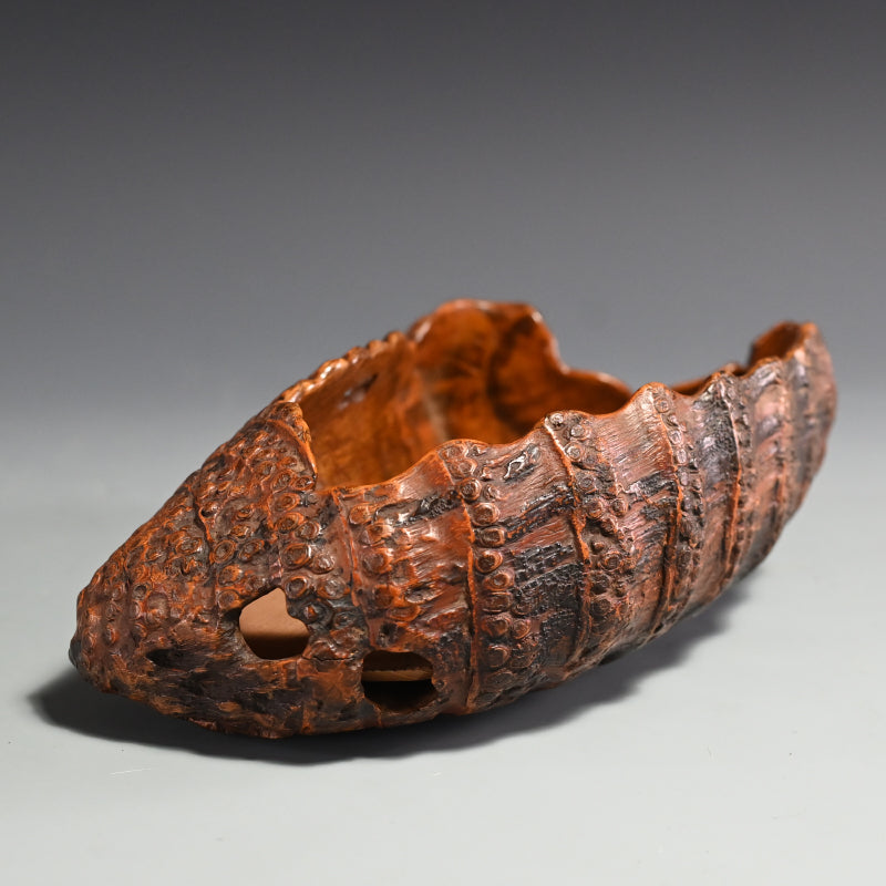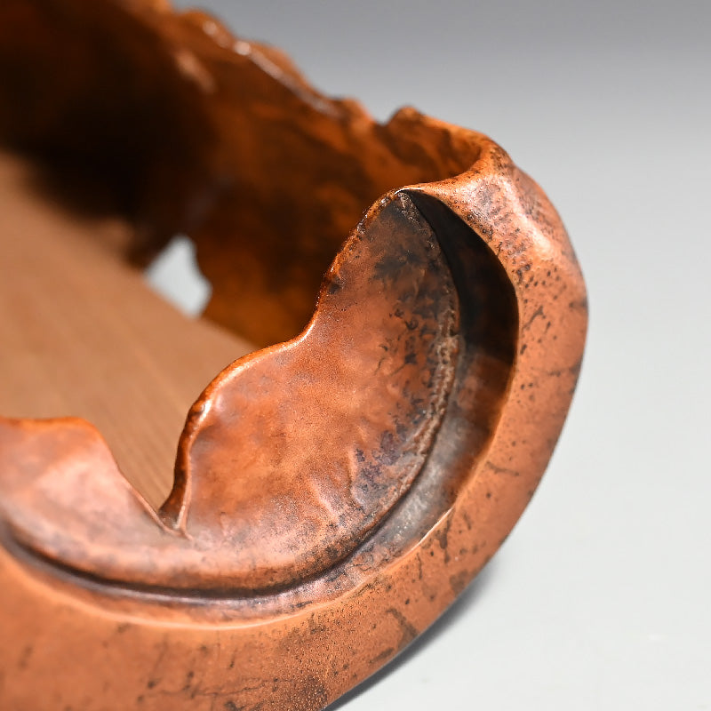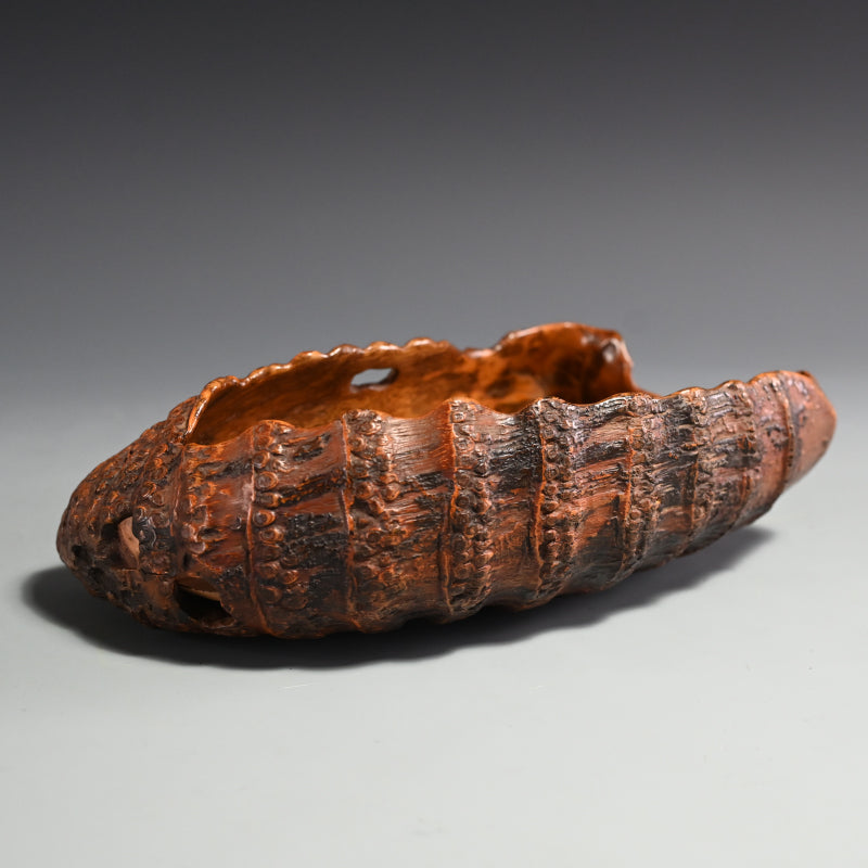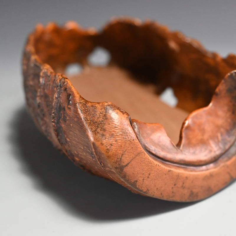 美しく磨かれ くり抜かれた竹の根をお盆に仕上げました。表面が平らになるように 木目の整った杉材を内側に挿入しています。自然の穴や老朽化が長い年月の間に生じ 根は磨り減っており、切られたり根こそぎにされたりして地中から露出しています。これは日本の侘び寂びの美学に表現された哀愁の素晴らしい例です。はかないものと衰退していくものすべてに対する感謝の気持ちです。 サイズは 27 x 17 x 10cm で 特注の古い木箱に入っており、状態は良好です。購入時に箱に入っていた新聞には 昭和7年10月10日の日付が書かれています。