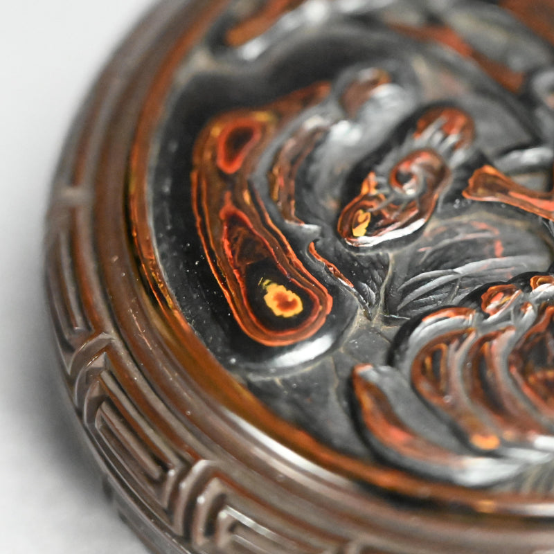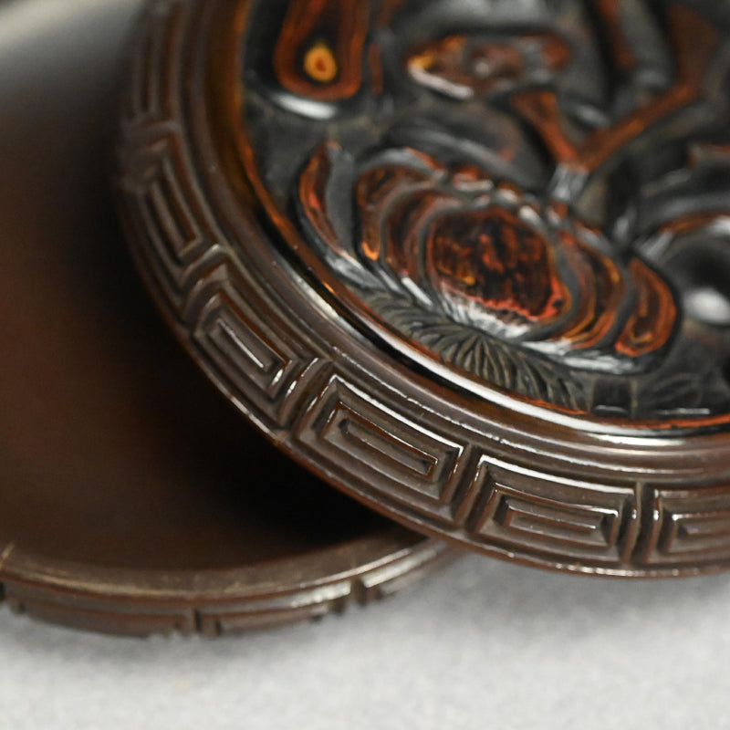 日本のアンティーク彫刻漆塗り香合香炉