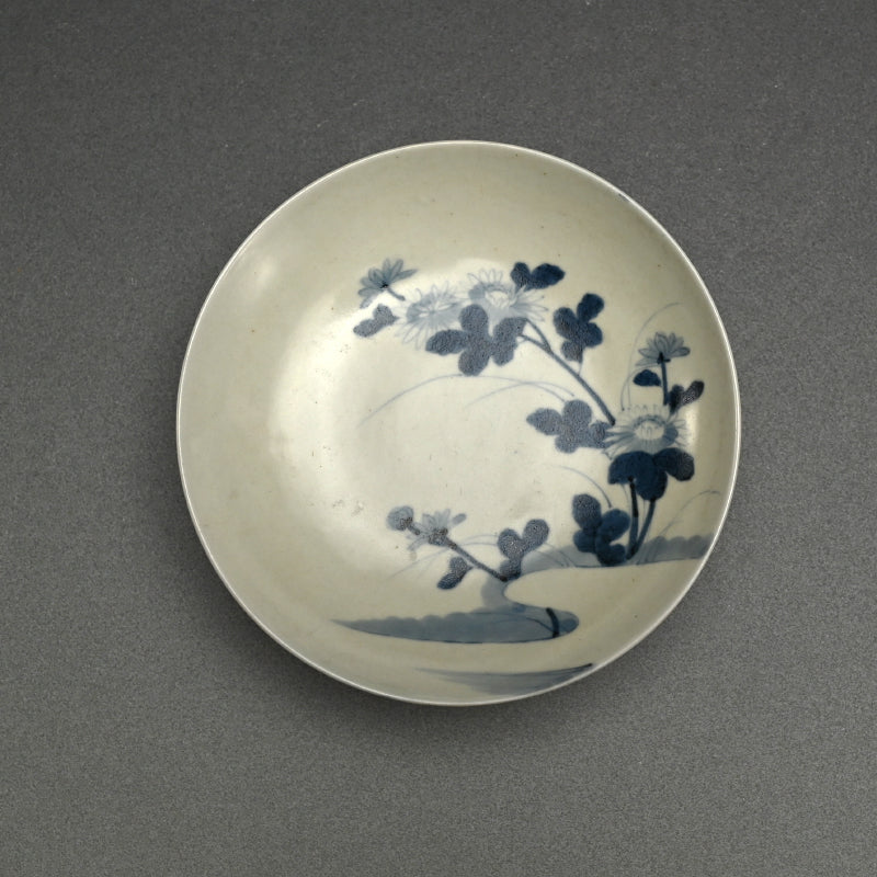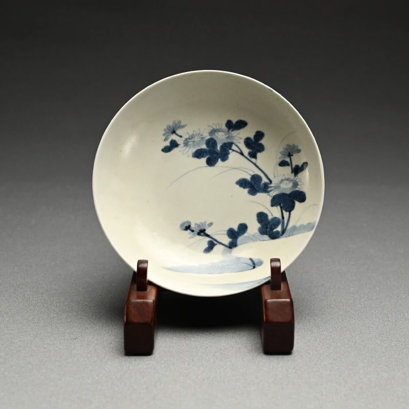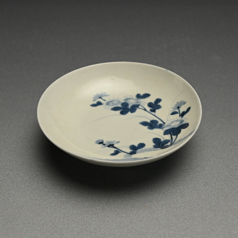 Antique Japanese Hirado Porcelain Dish, Wild Chrysanthemum