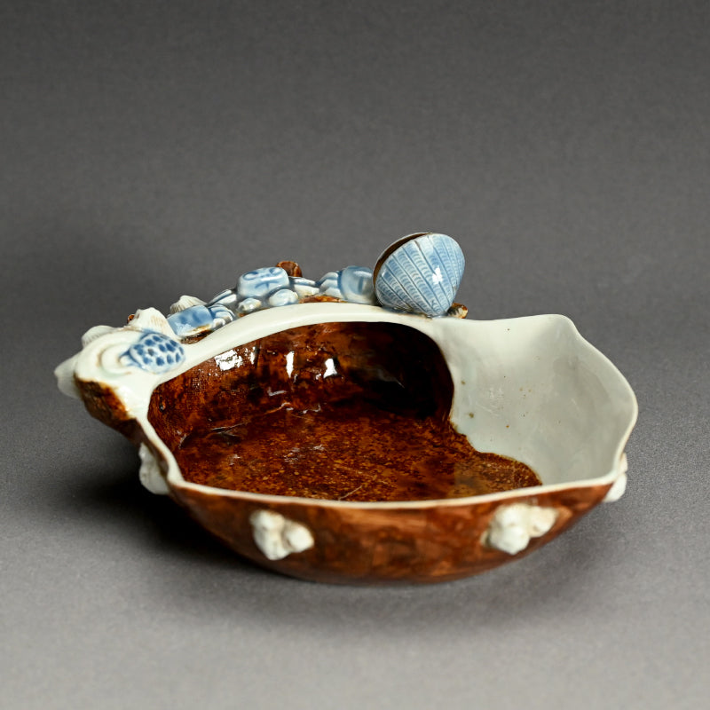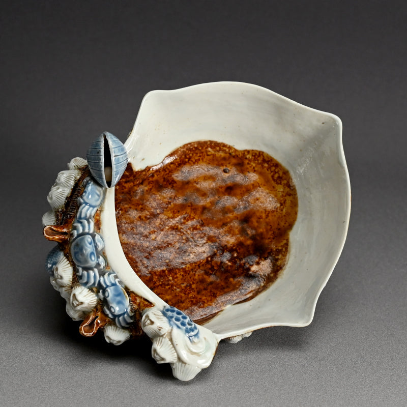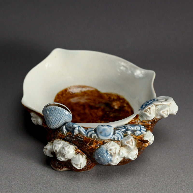 Antique Japanese Hirado Singing Shell-Shaped Bowl