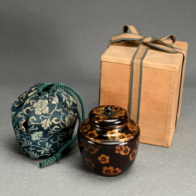 Antique Japanese Matcha Lacquer Chaire Plum Blossoms