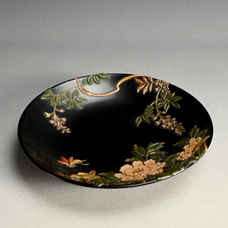 アンティーク高森絵漆皿 藤 香彩作 ー廣斎