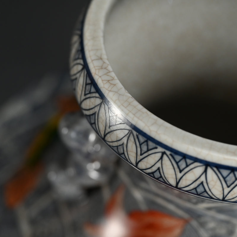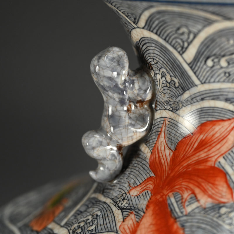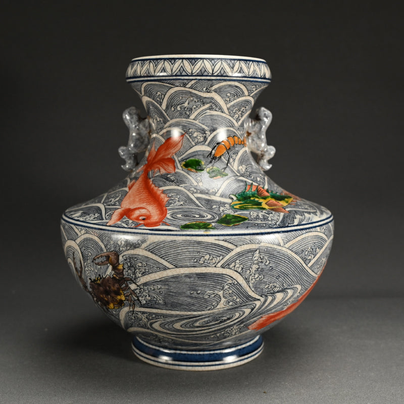 Antique Japanese Vase with Brilliantly Colored Sea Life