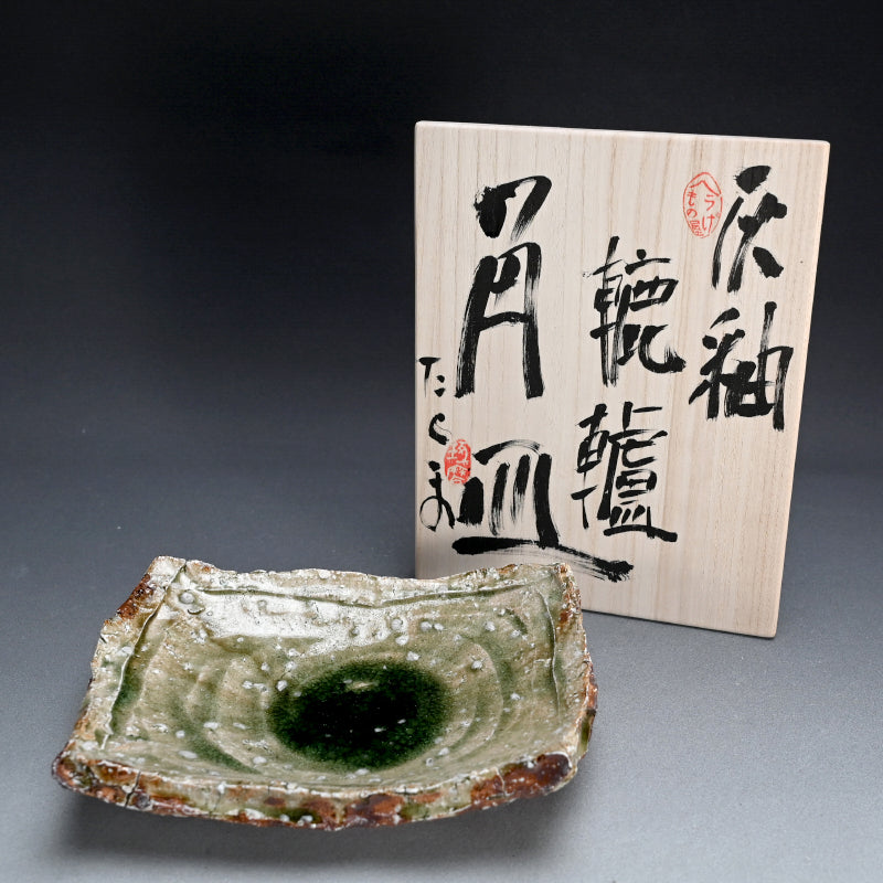 Ash Glazed Kakuzara Squared Plate ー村越 琢磨 “灰釉 轆轤 角皿”