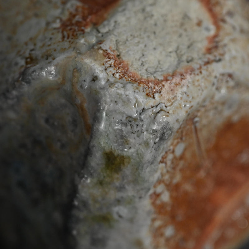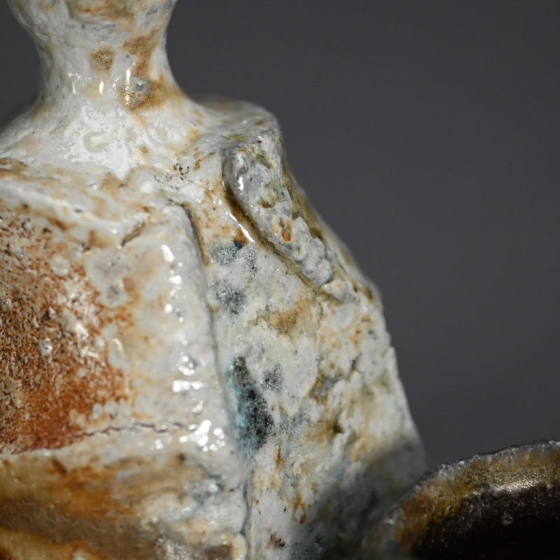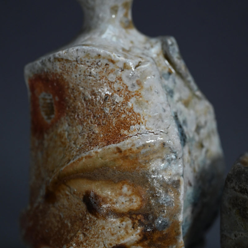 Atarashi Manabu has been growing in popularity as one of the leaders in the Iga pottery tradition since the first time I saw his work nearly 20 years ago when visiting the family showroom in Iga village. Born in 1973 in Osaka son of the second generation artist and one of the leading revivalists of the Iga tradition in post war Japan, Atarashi Kanji. He graduated the literature department of Kansai University in 1995, moving to apprentice under his father a few years later. In 2002 he built his first anagama Kiln, and held his first of a multitude of solo exhibitions. Intensely fired multiple times to achieve the bidoro glass puddles and landscape effects which define his aesthetic, the geometric works add a contemporary sensibility to the traditional Iga style and transcend the realm of utilitarian crafts breaking into the sculptural domain. His work has proven innovative and challenging to the norm, taking his fathers tradition into the 21st century.