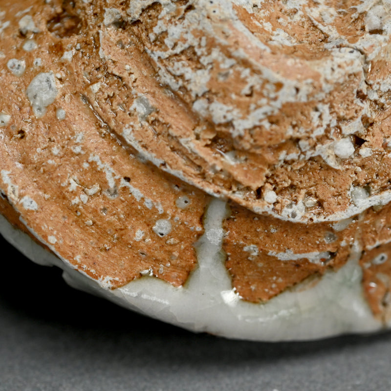 Murakoshi Takuma is one of those enigmas who simply lives to work with clay. He does not seek to make a living through pottery, but through his primal approach has earned a following which keeps his work in high demand. He was born in Aichi prefecture in 1954 and began his stroll down the pottery path in 1980 under the tutelage of Kyoto potter Umehara Takehira. Favoring very rough Shigaraki glaze, he established his own kiln in 1997 in the Kiyomizu pottery district of Kyoto, then moved to Nagaoka in 2002. Although eschewing the world of competitive exhibitions, he has been picked up by many of Japan’s preeminent galleries, including private exhibitions at the prestigious Kuroda Toen of Tokyo’s Ginza District.