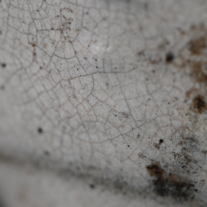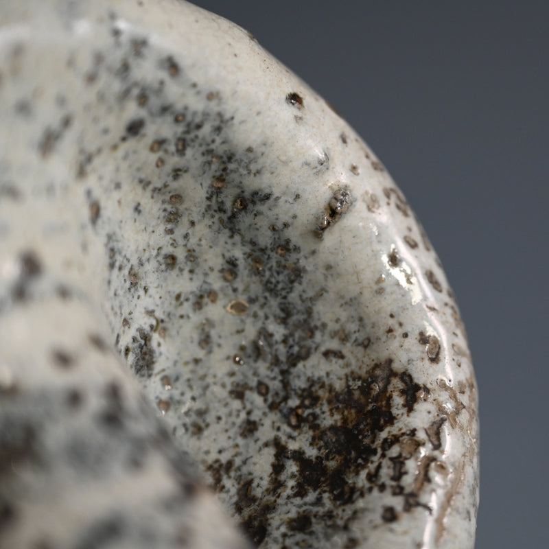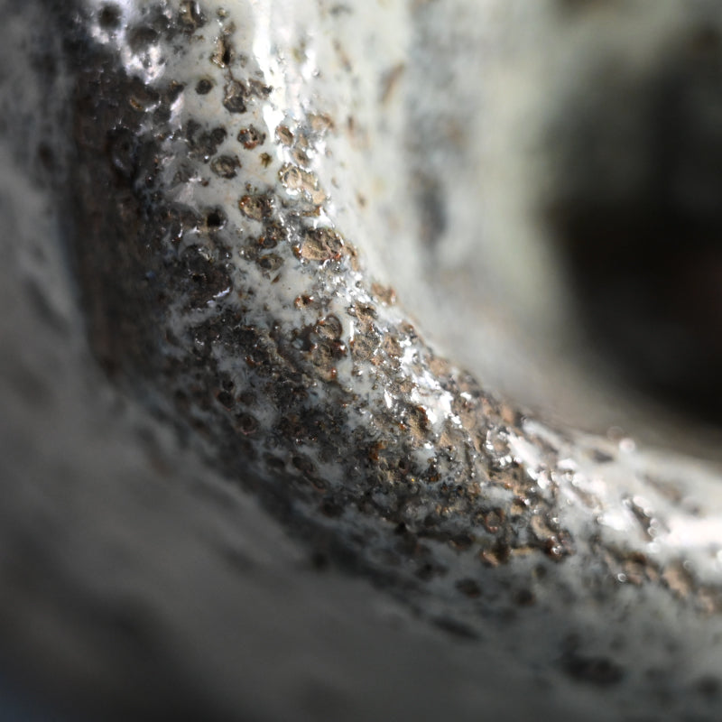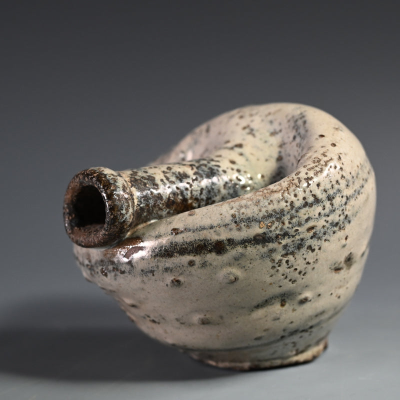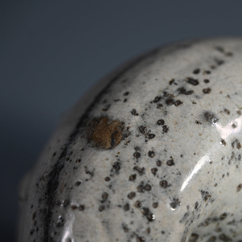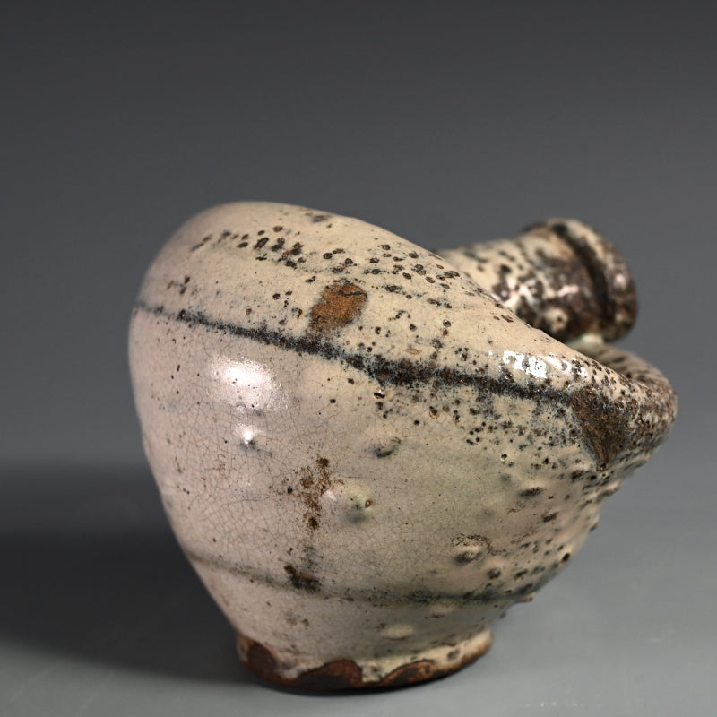 日本の南西部にある萩地方で作られたこの崩れた瓶は、古い桐の収納箱に収められています。青い釉薬で覆われています。大きさは 17.5 x 18 x 13.5 cmで、全体的に状態は良好で、19世紀のものです。