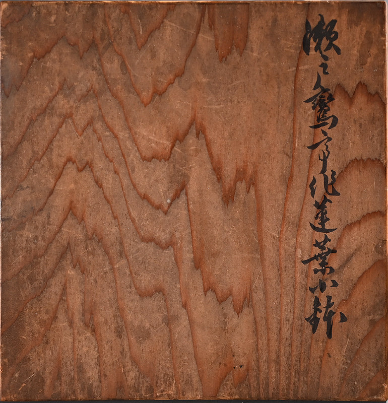 京都の松月山 鸞亭による、朽ちゆく蓮の葉をかたどった繊細な染付椀です。江戸時代後期のもので、底に銘があります。松月山鸞亭は江戸時代後期の京都の芸術家で、当初は染付青花器を手がけ、1865年頃には萬古様式の鮮やかな赤色の釉薬をかけた陶器を制作しました。縁には使用と経年による欠けが多く見られますが、これはゆっくりと朽ちゆく葉のモチーフに合致していると思われます。ひび割れや修復はありません。この鉢は直径約14.5cm、高さ約6.5cmで、「蓮葉小鉢」という古い木箱に入っています。