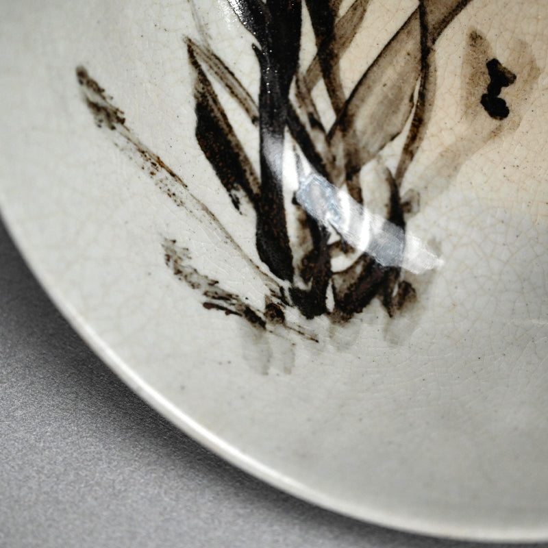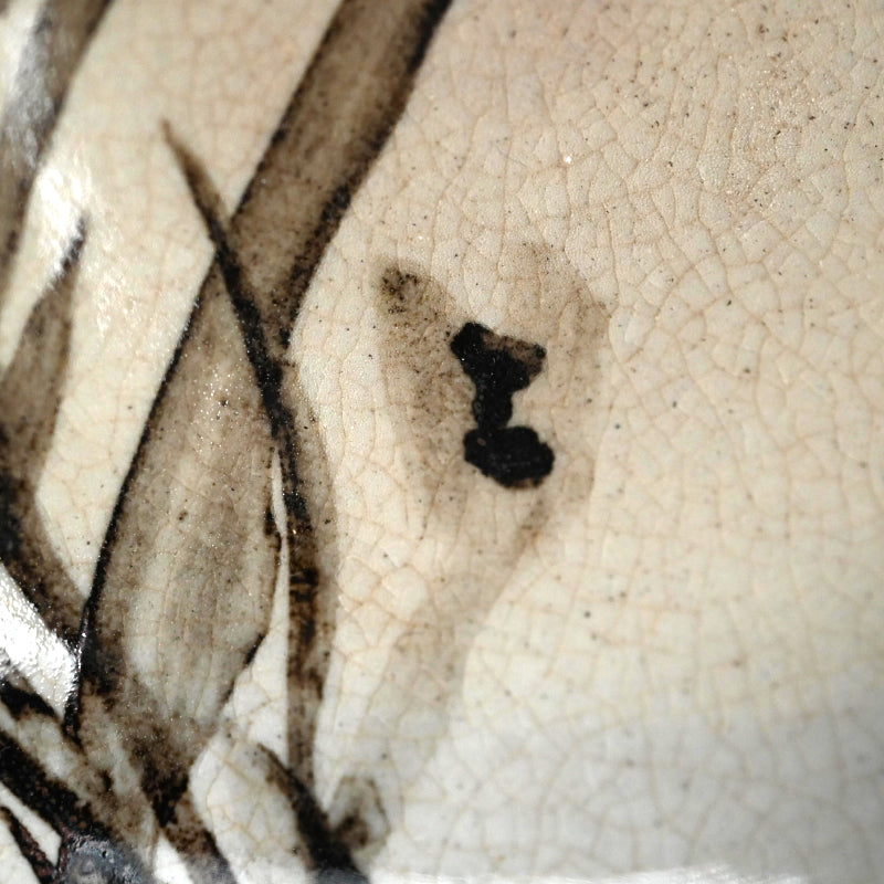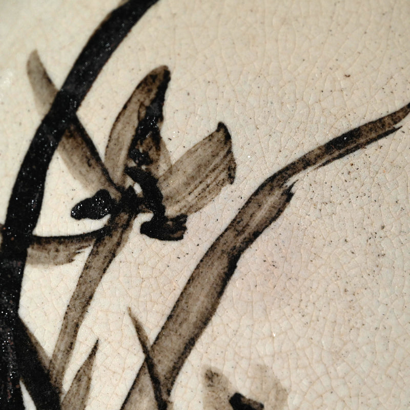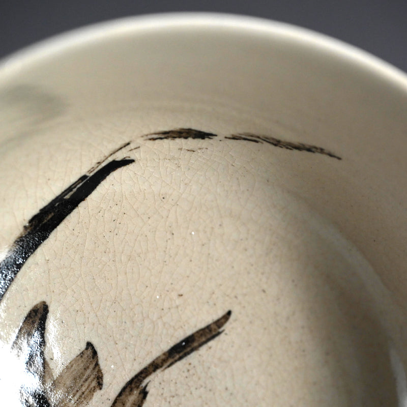 雲林院 寶山(宝山)の系譜は4世紀以上にわたり、京都の洗練された陶芸の伝統を象徴する存在でした。1555年、雲林院 耀蔵は陶磁器の産地であった信楽から京都の上賀茂に移り、祭器の製作を開始し、初代 宝山として称えられています。7代目は1645年に粟田市 東若宮町に窯を移し、粟田窯を開窯しました。9代目は大和国生駒の宝山寺の開山である律宗僧・湛海より「宝山」の号を賜り、以来 家名を世襲しました。この作品は18代目の作と考えられます。現在も20代目が窯を営んでいます。