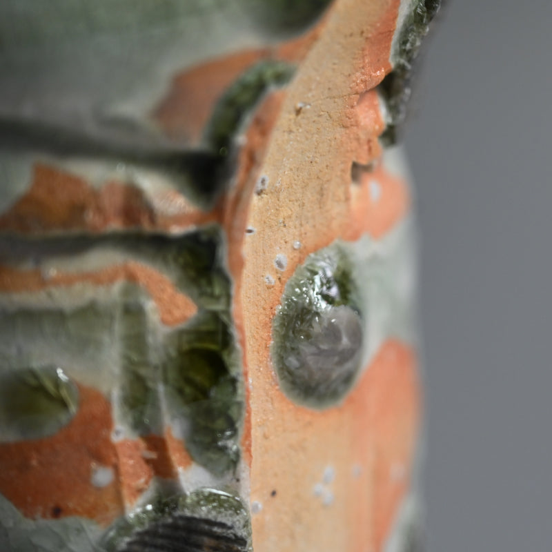 Atarashi Kanji was born in Osaka in 1944, and graduated the Osaka College of Craft design. After 3 years in Kobe, and 4 in Kishiwada (Wakayama) he came to settle in Iga, where he was one of the driving forces behind the resurrection and preservation of the Iga tradition. Although displayed at the National Craft Fair, he prefers the intimacy of the private exhibition, of which he holds several every year. And if ones visit to japan is not timed right for an exhibition, he can otherwise be found at his kiln working along with his son and daughter.