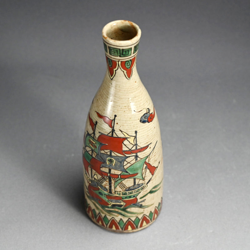 アンティーク日本の船徳利に描かれたオランダ船 ー帆舟人物之図 徳利