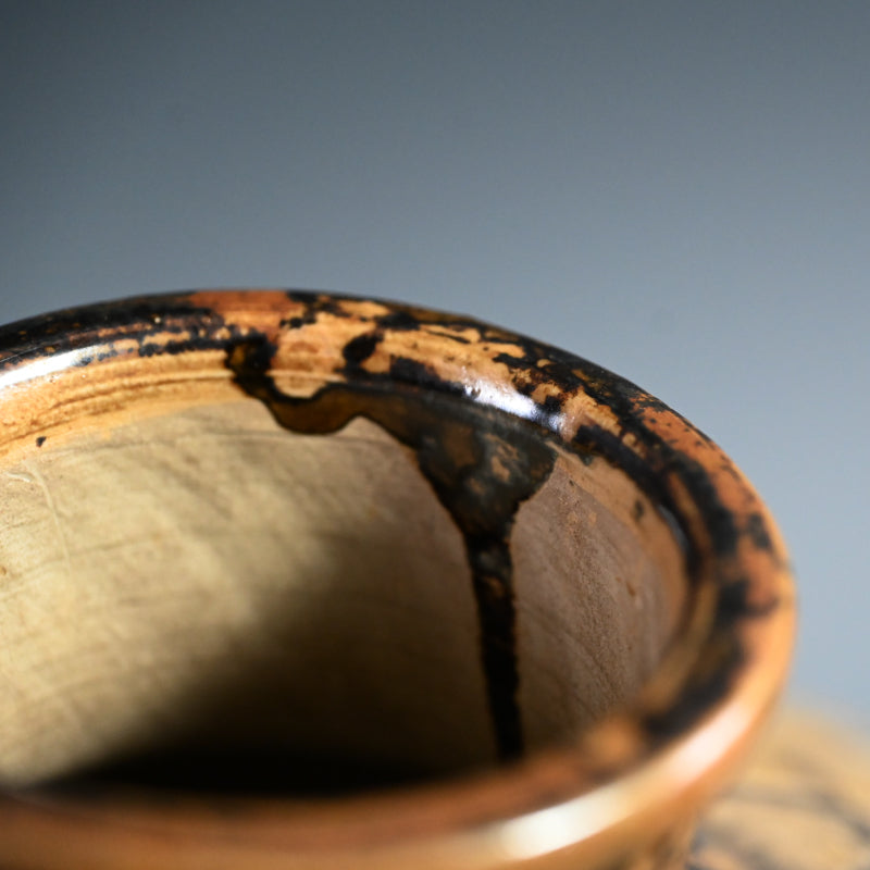 小代焼は熊本県で約400年前に始まった焼き物で、小代山の麓に築かれた窯にちなんで名付けられ、同地方を代表する陶磁器の一つとされています。朝鮮半島の技術・様式の影響を強く受け、鉄分を多く含んだ土に赤褐色の釉をかけた素朴で重厚な作風が特徴ですが、藁や笹の灰から作った黄や白などの色の異なる釉をかけて作る意匠が特徴です。細川家が肥後国を掌握した際、豊前・阿賀野焼の目小路源七、葛城八左衛門らを1632年頃に呼び寄せ、小代山の麓に窯を開いたのが始まりと伝えられています。同時期に豊前・阿賀野から移住した人々によって高田焼も作られています。藁灰釉を基本とする釉薬は、現在に至るまでほとんど変わっていません。江戸時代には 一部の例外を除き 小代焼は肥後藩内で消費され、他地域への普及はありませんでした。当時の窯跡である びん焼窯や瀬上窯などは 現在でも南関町に残っており、現在熊本県内には11軒の窯元があります。