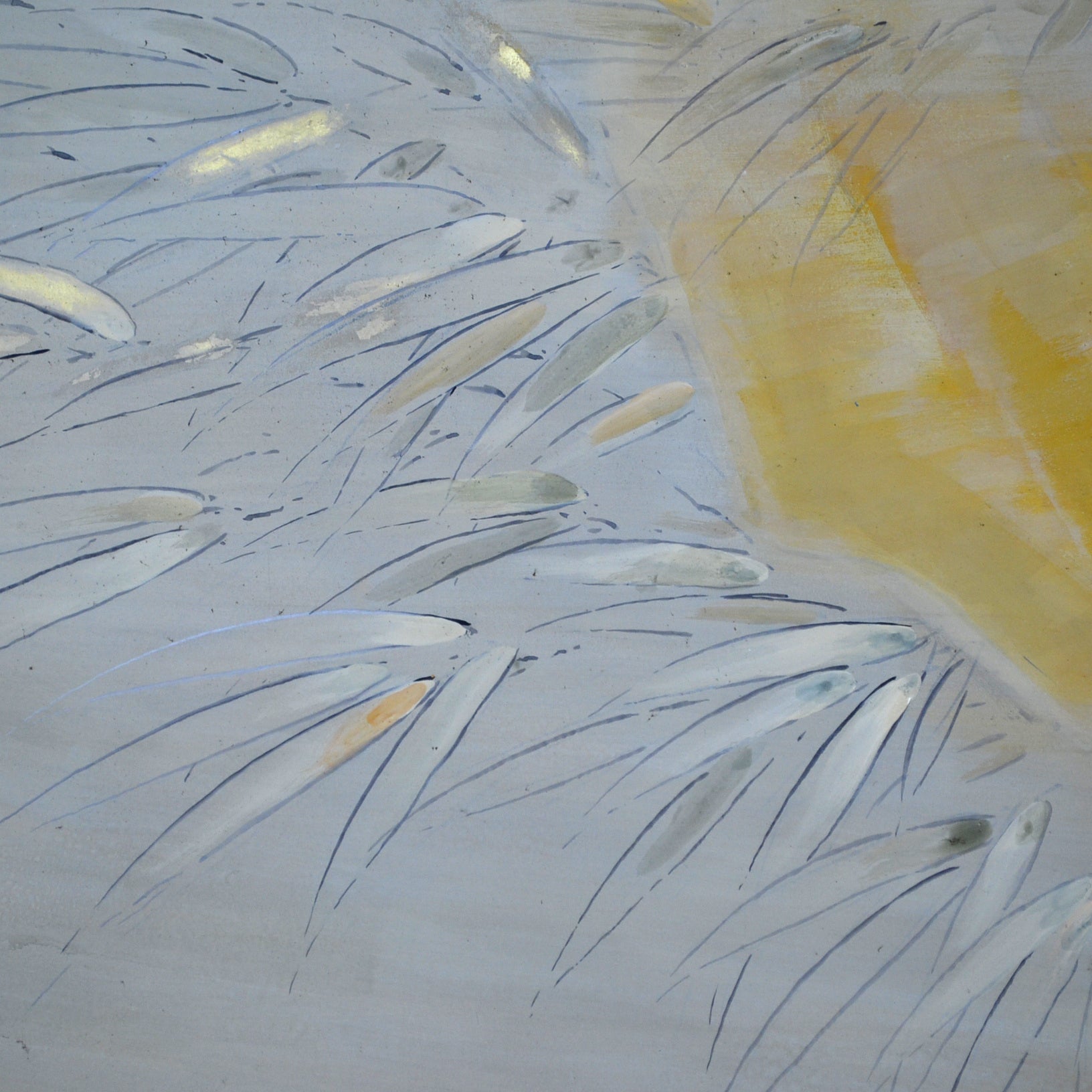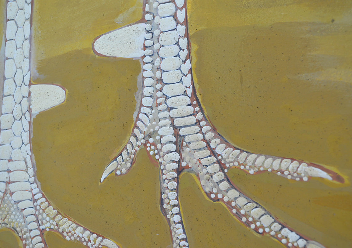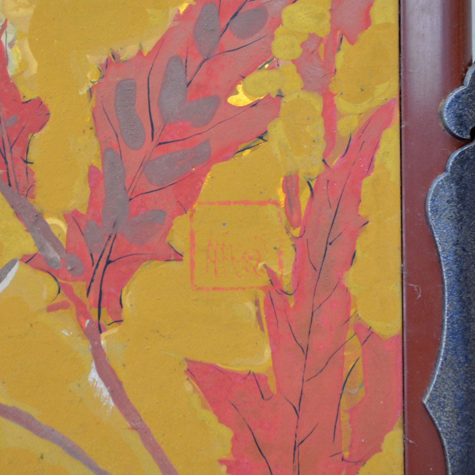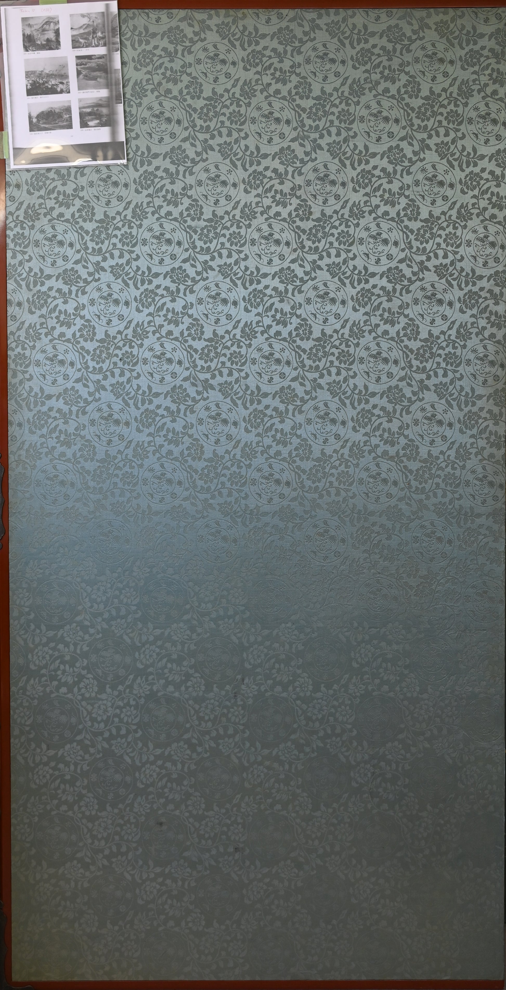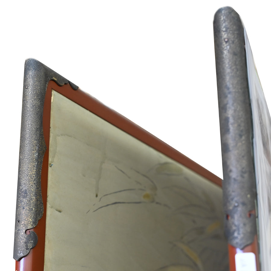 村嶋酉一作「闘鶏図」。1932年の帝展出品です。サイズは187×187cm、勇ましい闘鶏3羽を描いた作品で、保存状態は良好です。闘鶏の目や脚は立体的に彩色されており、間近で見るととても迫力があります。