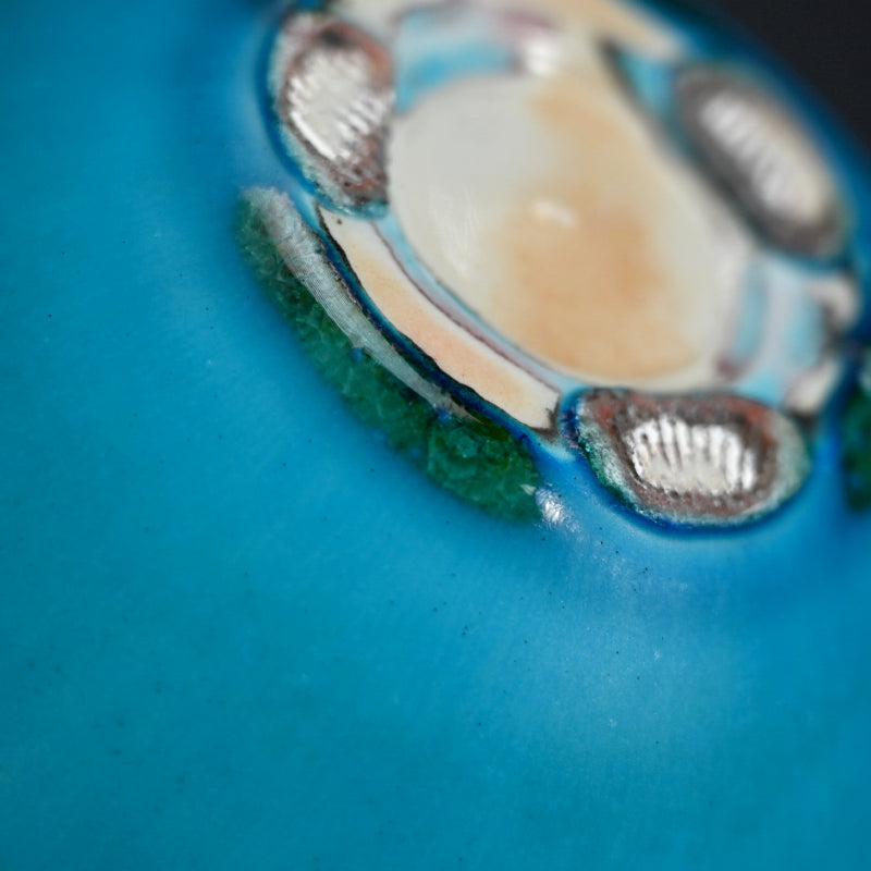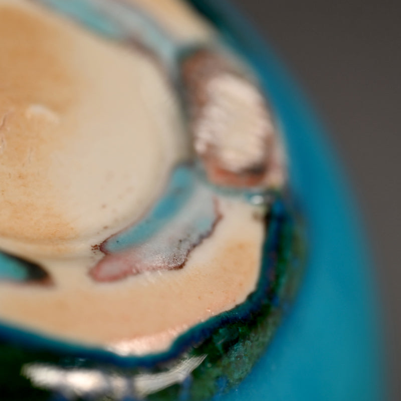 古野幸治氏は大学で経営学を学びましたが、卒業後すぐに陶芸家になることを決意しました。その後40年間、様々な灰釉を試みながら創作活動を続けてきました。しかし、20年前、妻の急逝を機に状況は一変しました。それ以来、古野氏は天に響く青を基調とした独自の作風を確立し、令和最初の国賓として、天皇皇后両陛下からアメリカ合衆国大統領夫妻への贈り物として選ばれました。