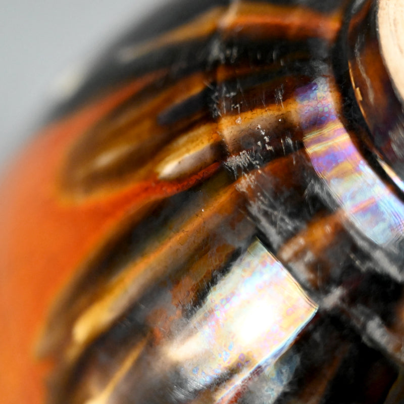 16世紀後半の日本による朝鮮侵略の後、島津義弘は帰還兵とともに朝鮮の陶工を日本に連れてきて、現在の長崎県に窯を築きました。これが古帖佐焼の起源です。このざらざらした質感はそのスタイルを象徴していますが、古帖佐焼は主に深紅色の粘土に濃い釉薬を施したものでした。 元立院は 1663年に小野元立坊によって創建された弘長寺の跡を継いで建てられました。この窯は 1 世紀弱存続し、1700 年代半ばに閉鎖されました。 平佐焼は、薩摩藩主本郷家の個人窯として1786年に始まったと言われており、青磁や白磁から鉄釉や三彩の器まで、初期の様式を取り入れた複雑な陶器を数多く生み出してきました。