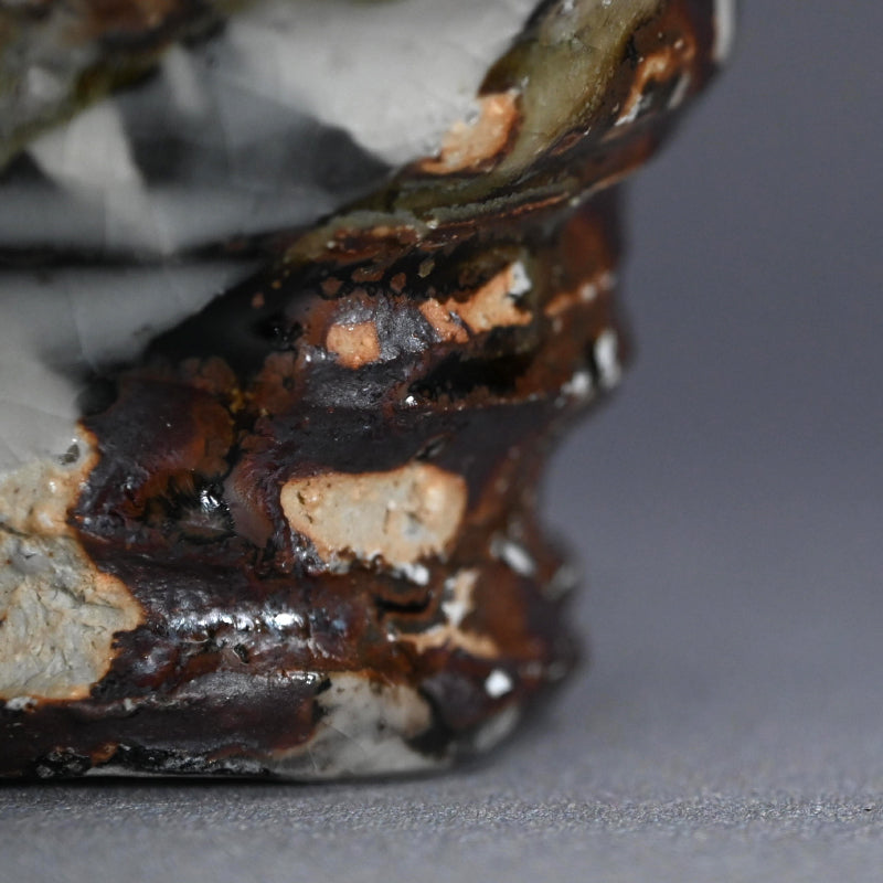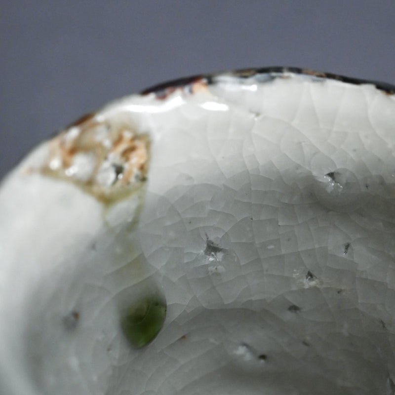 Murakoshi Takuma is one of those enigmas who simply lives to work with clay. He does not seek to make a living through pottery, but through his primal approach has earned a following which keeps his work in high demand. He was born in Aichi prefecture in 1954 and began his stroll down the pottery path in 1980 under the tutelage of Kyoto potter Umehara Takehira. Favoring very rough Shigaraki glaze, he established his own kiln in 1997 in the Kiyomizu pottery district of Kyoto, then moved to Nagaoka in 2002. Although eschewing the world of competitive exhibitions, he has been picked up by many of Japan’s preeminent galleries, including private exhibitions at the prestigious Kuroda Toen of Tokyo’s Ginza District.