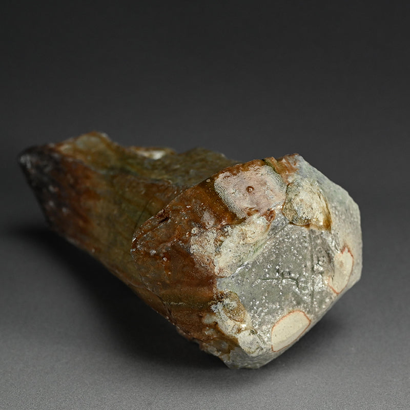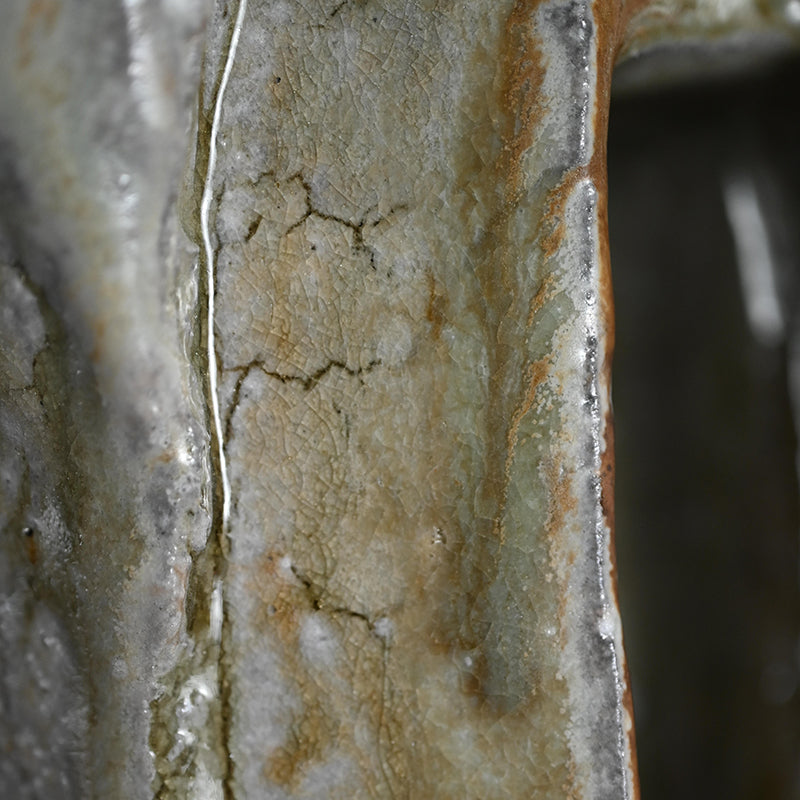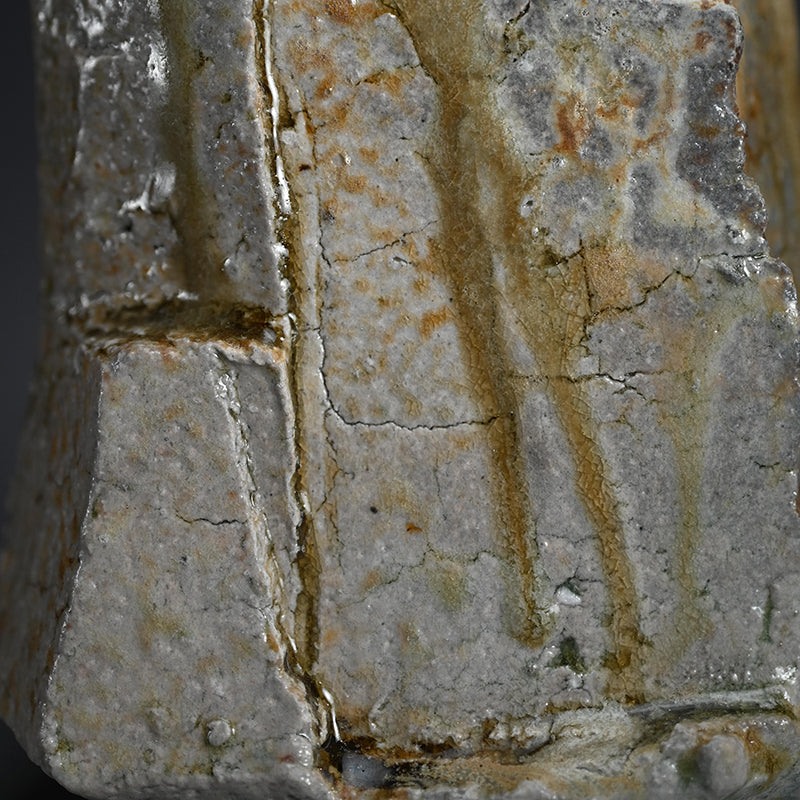 Atarashi Manabu has been growing in popularity as one of the leaders in the Iga pottery tradition since the first time I saw his work nearly 20 years ago when visiting the family showroom in Iga village.  Born in 1973 in Osaka son of the second generation artist and one of the leading revivalists of the Iga tradition in post war Japan, Atarashi Kanji.  He graduated the literature department of Kansai University in 1995, moving to apprentice under his father a few years later.  In 2002 he built his first anagama Kiln, and held his first of a multitude of solo exhibitions.  Intensely fired multiple times to achieve the bidoro glass puddles and landscape effects which define his aesthetic, the geometric works add a contemporary sensibility to the traditional Iga style and transcend the realm of utilitarian crafts breaking into the sculptural domain.  His work has proven innovative and challenging to the norm, taking his fathers tradition into the 21st century.