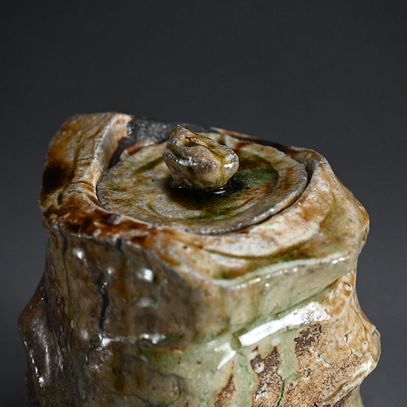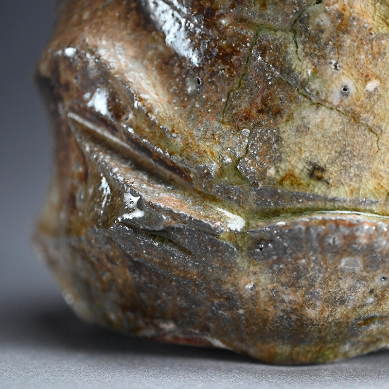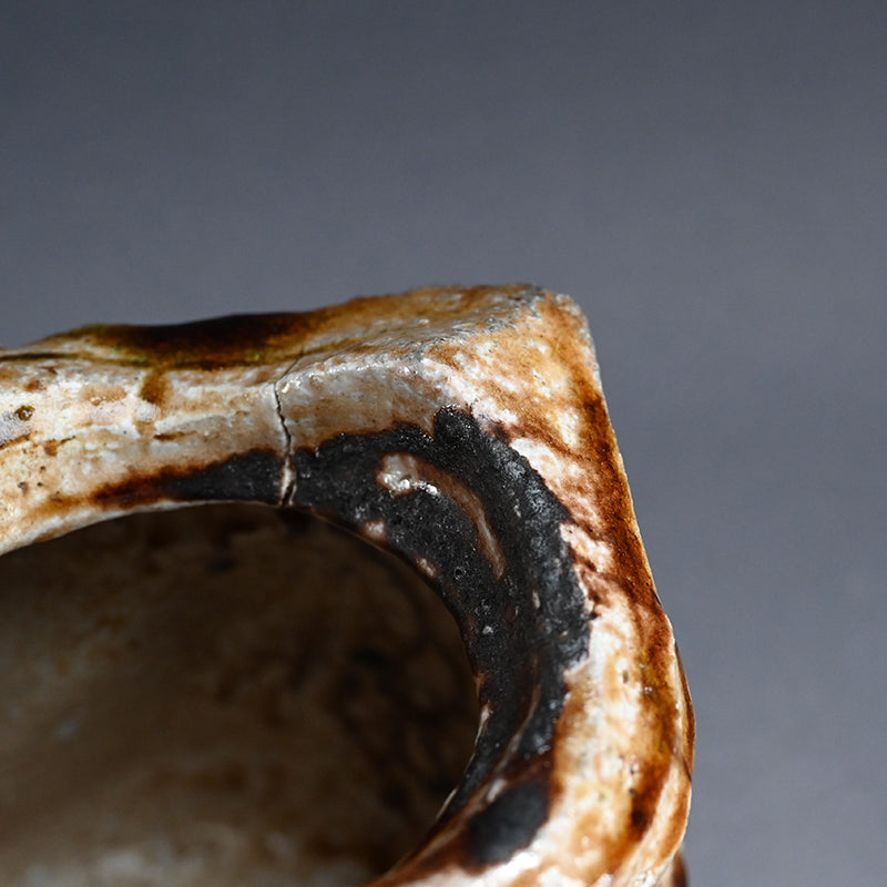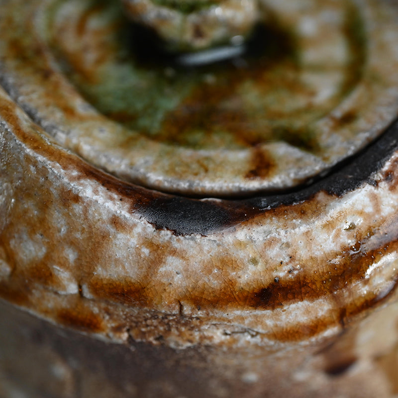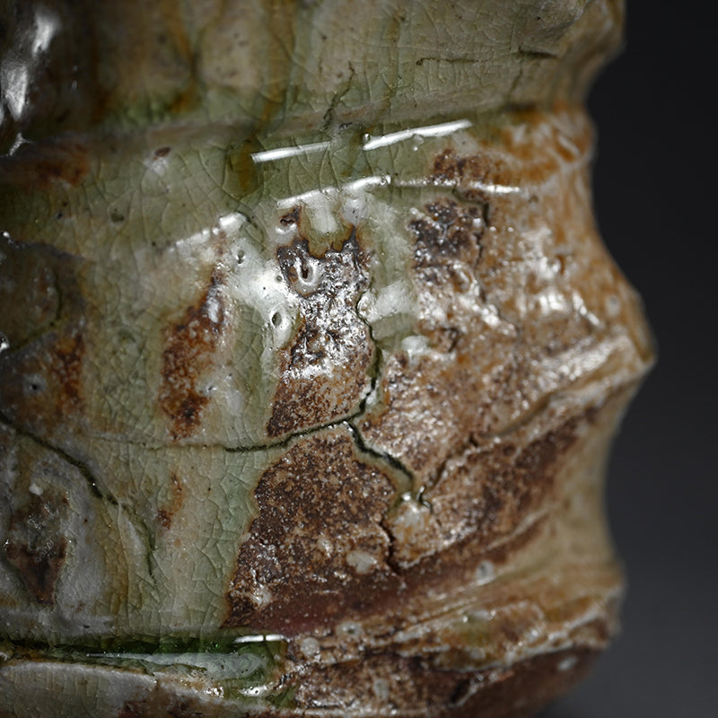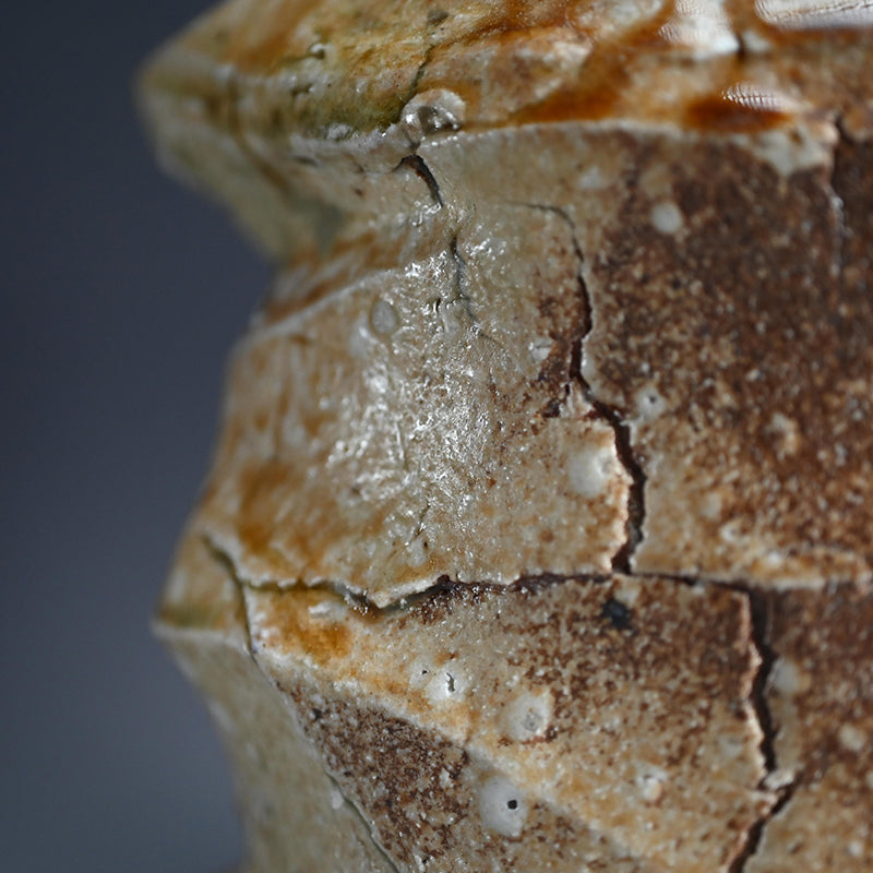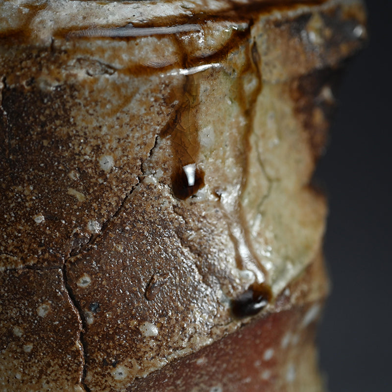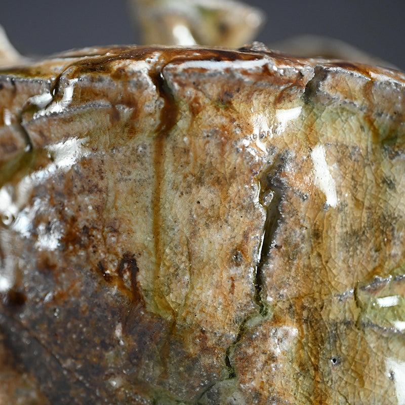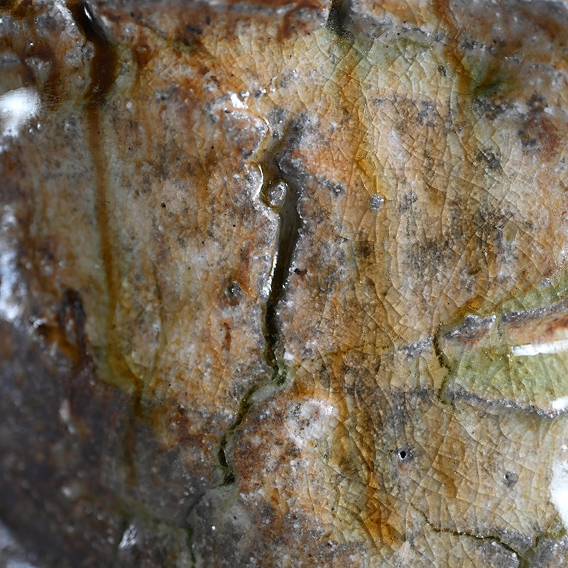 Atarashi Manabu has been growing in popularity as one of the leaders in the Iga pottery tradition since the first time I saw his work nearly 20 years ago when visiting the family showroom in Iga village. Born in 1973 in Osaka son of the second generation artist and one of the leading revivalists of the Iga tradition in post war Japan, Atarashi Kanji. He graduated the literature department of Kansai University in 1995, moving to apprentice under his father a few years later. In 2002 he built his first anagama Kiln, and held his first of a multitude of solo exhibitions. Intensely fired multiple times to achieve the bidoro glass puddles and landscape effects which define his aesthetic, the geometric works add a contemporary sensibility to the traditional Iga style and transcend the realm of utilitarian crafts breaking into the sculptural domain. His work has proven innovative and challenging to the norm, taking his fathers tradition into the 21st century.