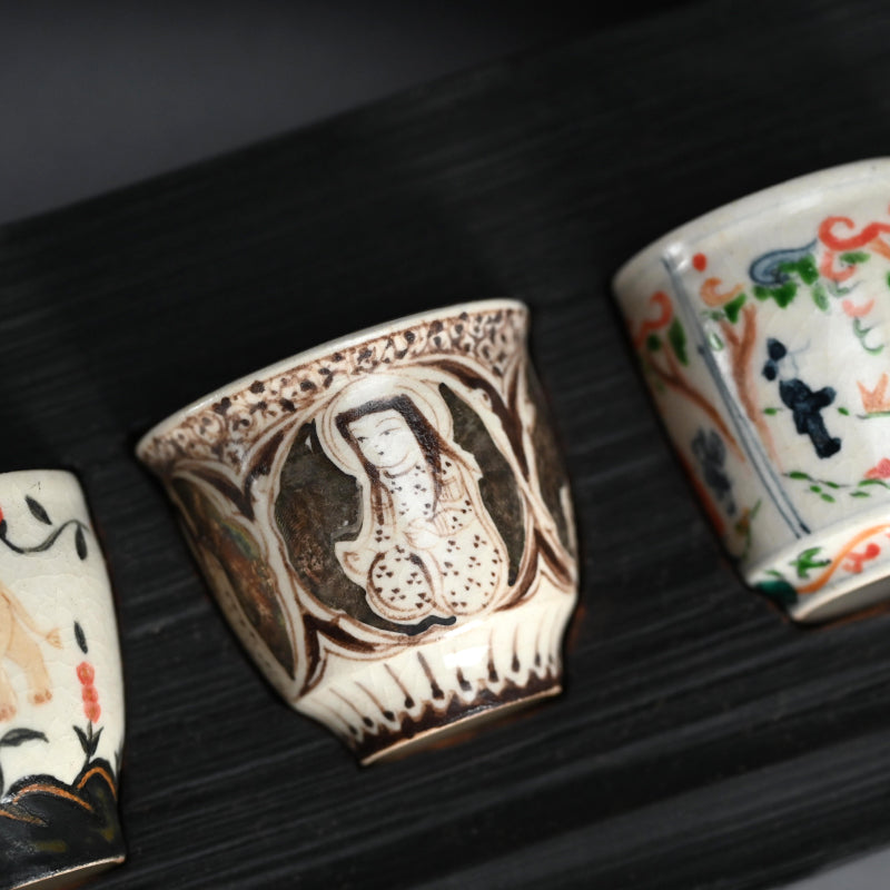 Masu Taka was born in Nagasaki in 1946, and is  a veteran designer who turned his hand to potting highly esteemed for his whimsical imagery.  He studied design both in Japan (1960s) and San Francisco (1970s). Recipient of many prizes in the design field, he turned his hand the decorating pottery in 1997, concentrating on private exhibitions as his venue.