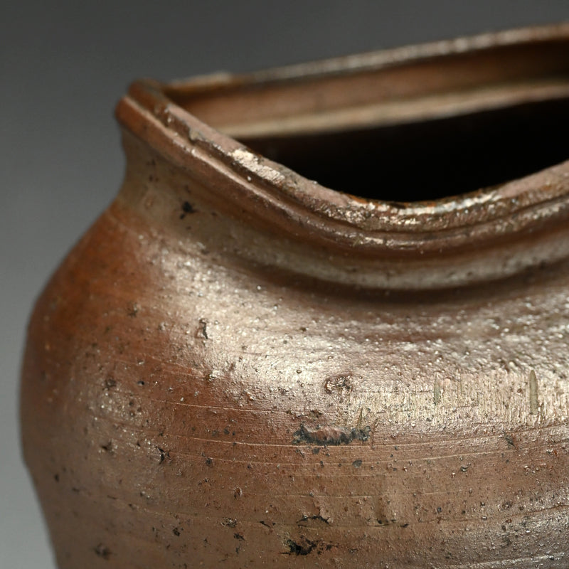 Iron Glazed Edo period Slumped Tamba Tsubo